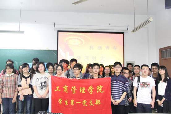 学生第一党支部在学院楼214教室顺利开展了以“挥洒青春,梦圆财大”为主题的支部活动。来自工商管理专业不同年级的党员代表、入党积极分子等参加了本次活动。