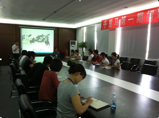 7月18日下午,浙江千里马人力资源服务有限公司第一期招聘经理特训班开幕仪式在公司总部五常隆重举行,来自人力资源管理系的11名实习同学参加了开幕仪式,并将继续参加为期一周的集中培训。