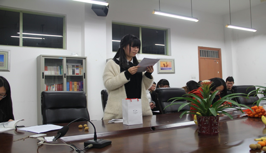 同时,俞佳老师对本次会议作了最后的讲话,她特别强调了物流专业和人力专业共同组成了学生第三党支部,希望各位党员和新发展的预备党员能够以身作则。由此,老师也提出了以下三个要求:一是各位党员和预备党员应增强自身的党性修养,要有政治意识;二是要有服务意识,尽管平时学习工作忙碌,但始终不能忘记自己是一名共产党员;三是要有表率作用,尤其是大四的党员要在就业上起表率作用。