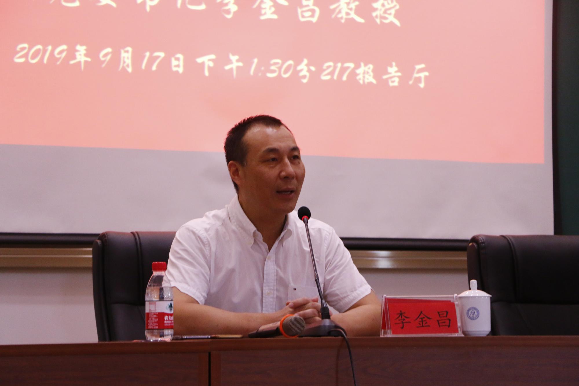 李金昌书记根据“不忘初心,牢记使命”主题教育的根本要求,围绕习近平总书记在2014年视察北京师范大学时提出的努力培养新时代“四有”好老师的重要讲话,结合自身作为高校教师的经历和感悟,向在场师生党员进行分享。他指出,教师的职责就是教育,教师要把培养德智体美劳全面发展的具有专业学科背景的人才作为自己的初心和使命,努力在工作中做到有理想信念、有道德情操、有扎实学识、有仁爱之心,做好传道、授业、解惑。