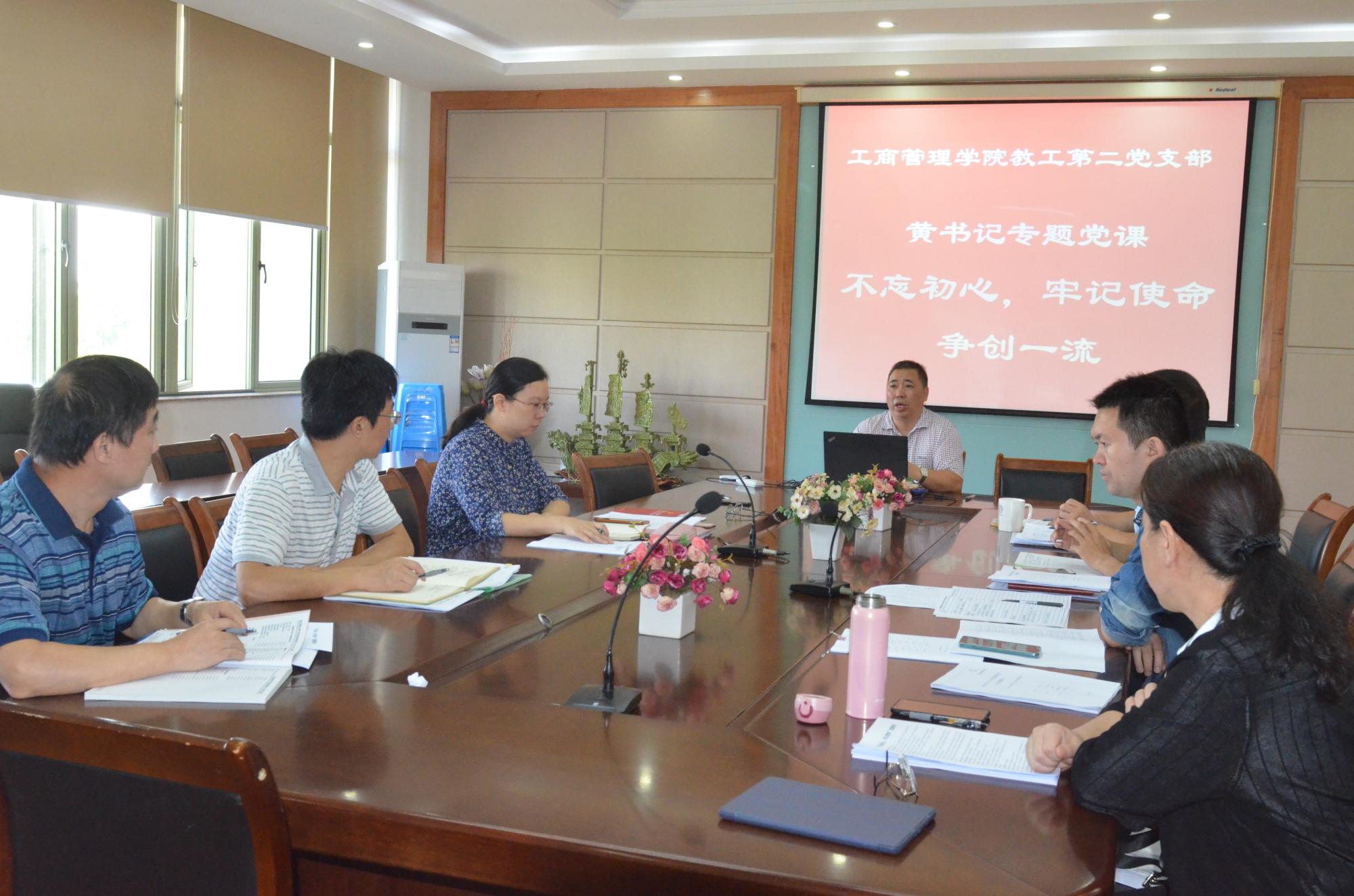 按照“不忘初心,牢记使命”主题教育要求,9月24日,学院党委书记黄卫华以“不忘初心、牢记使命,争创一流”为主题,结合学校、学院实际和自己的学习心得体悟,从不忘初心、牢记使命,必须坚定远大理想信念,必须具有坚强革命意志,必须发扬无私奉献精神,必须弘扬优良传统和作风,必须扎实开展主题教育,必须奋发有为追赶超越六个方面,为联系支部教师党员宣讲了“不忘初心,牢记使命,争创一流”党课,进一步深化了教师党员对“不忘初心、牢记使命”主题教育的认识和理解。