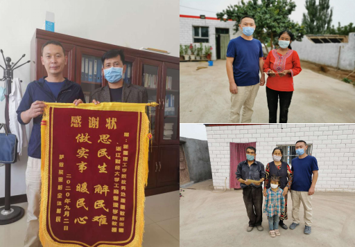 近日,在新疆理工学院(原新疆大学科学技术学院)进行援疆工作的我院张雷老师收到萨依买里村村民送来的“感谢状”锦旗,锦旗上写着“思民生、解民难,做实事、暖民心”。