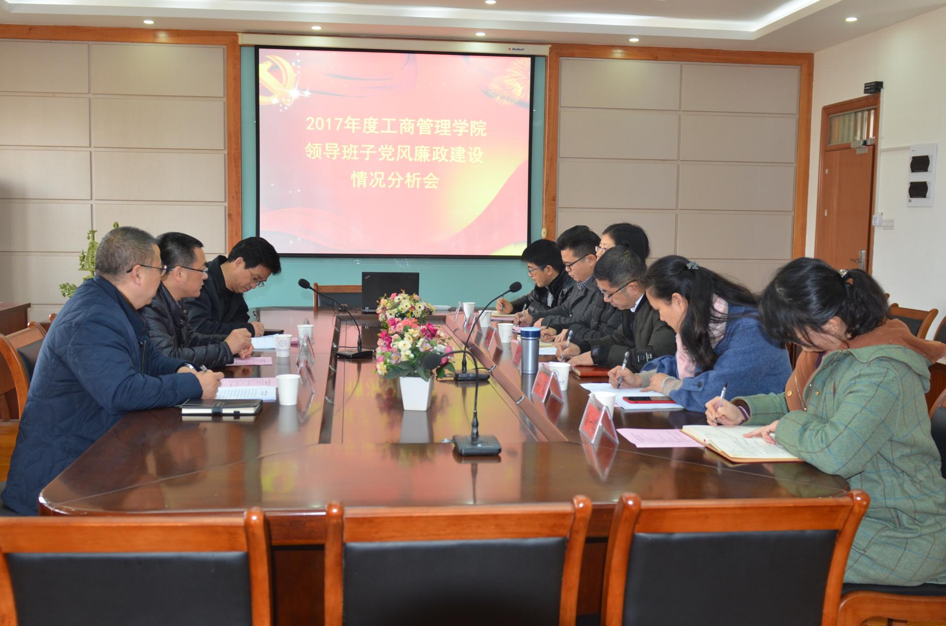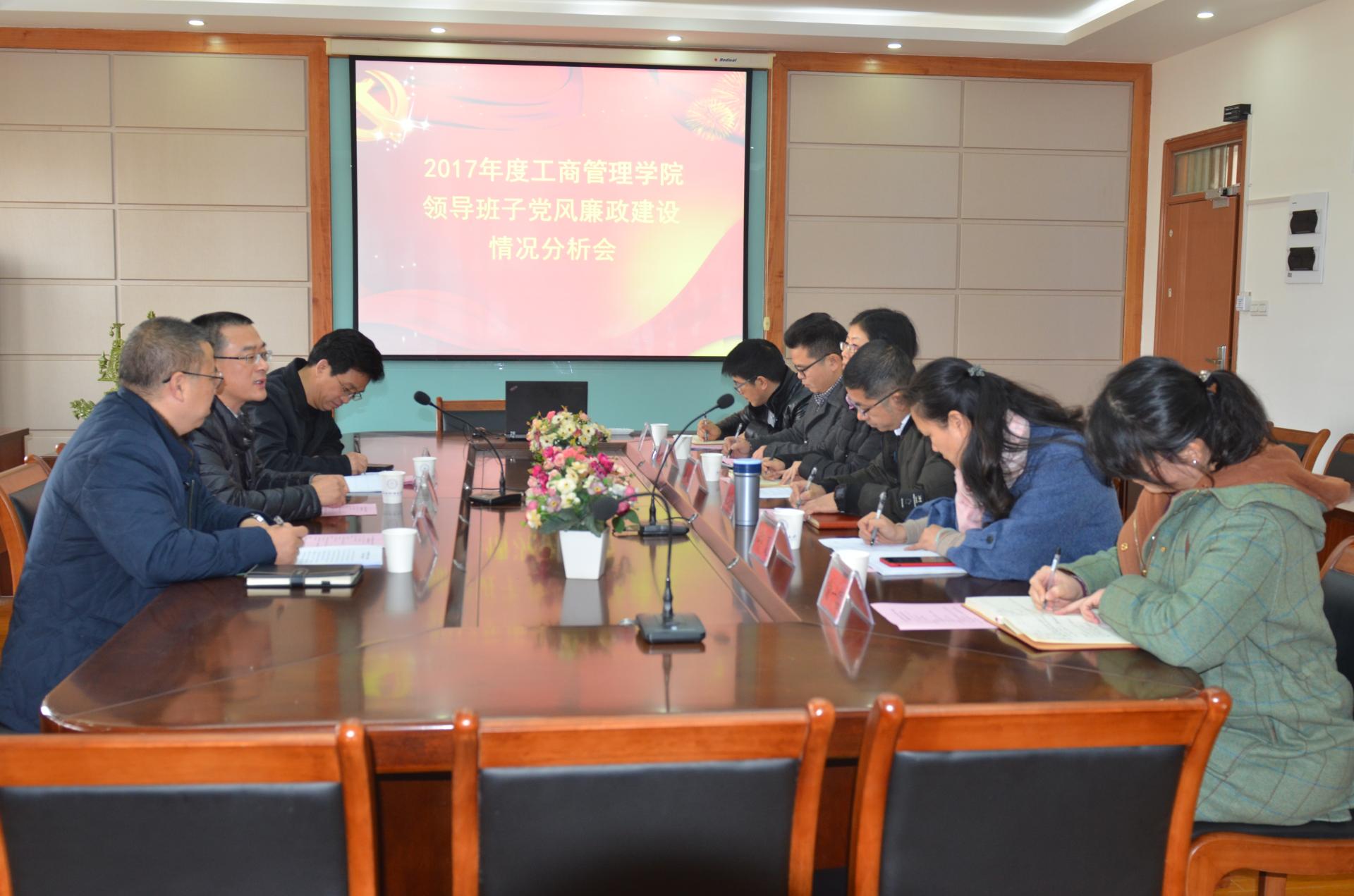 (MBA学院)党委纪委在学院410会议室召开2017年党风廉政建设情况分析会。联系校领导、校党委委员、宣传部部长徐晓东,学院党政班子成员等参加会议。会议由纪委书记谢敏主持。
