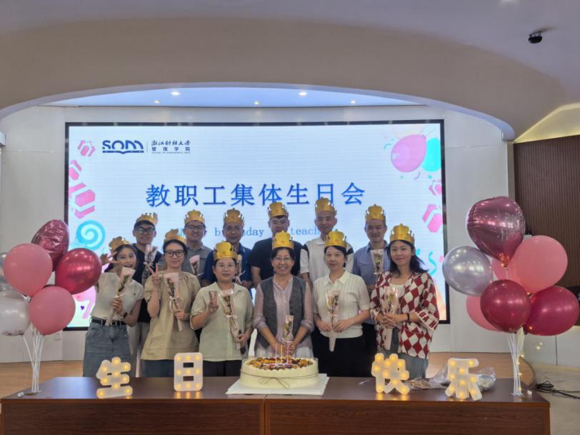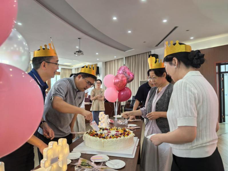 为8至10月份过生日的教职工举办了一场集体生日会。学院副院长张雷、党委副书记陈小芳及部分教师代表与寿星老师欢聚一堂,共同度过了一个难忘的集体生日。