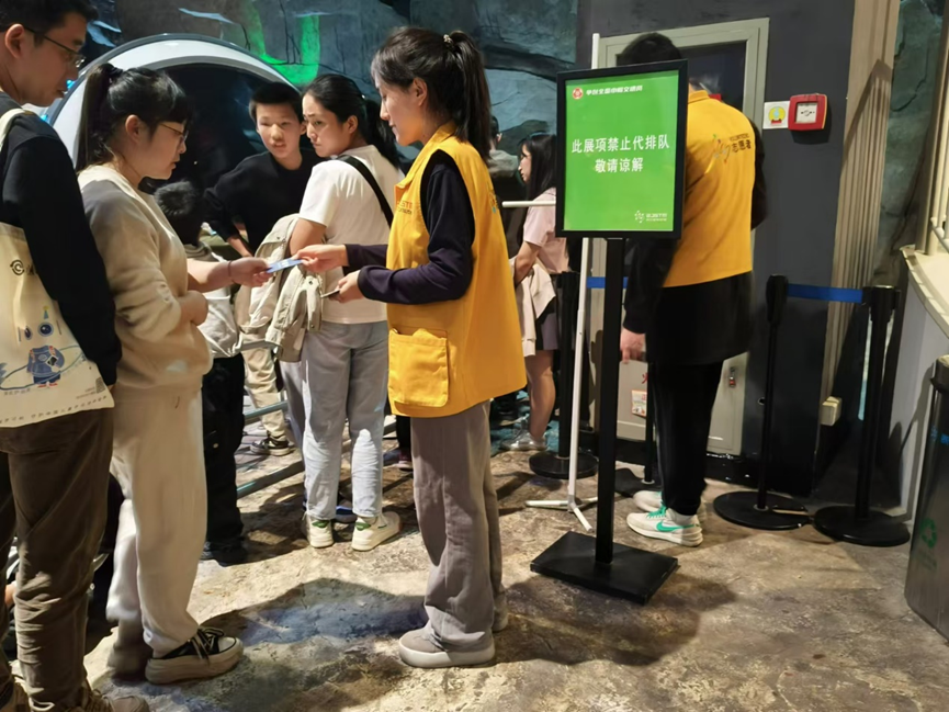 派出了10名志愿者前往科技馆,他们以饱满的热情和认真的态度投入到服务工作中。志愿者们协助科技馆工作人员进行展品讲解和答疑解惑,同时引导游客有序参观,确保了游客的游览体验更加顺畅和愉快。