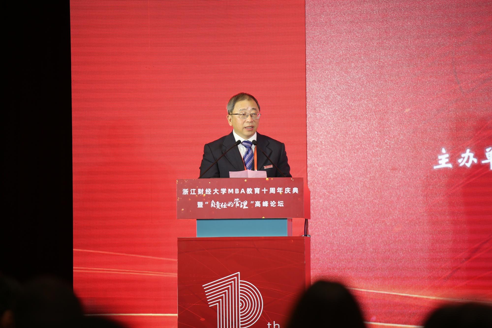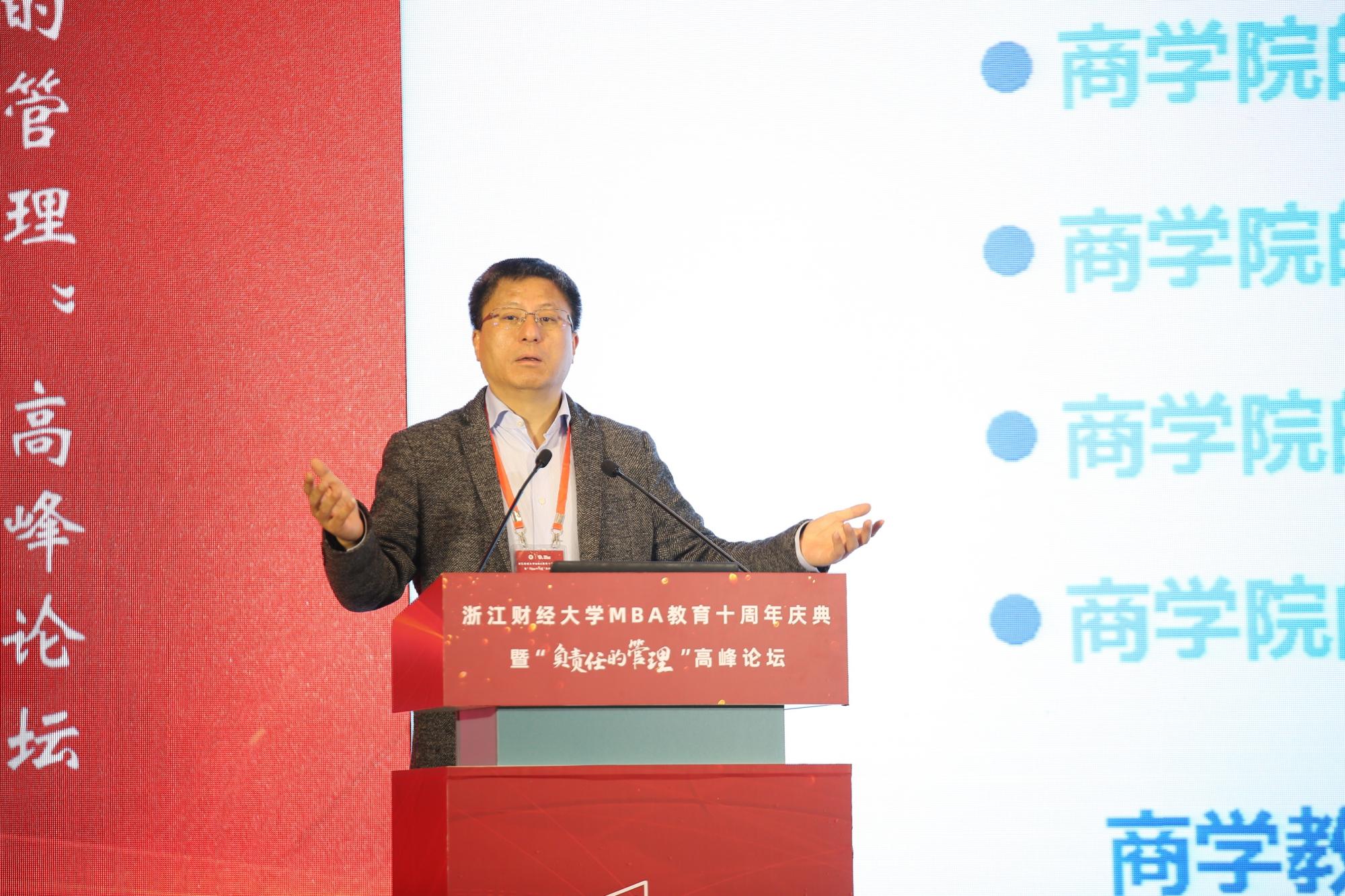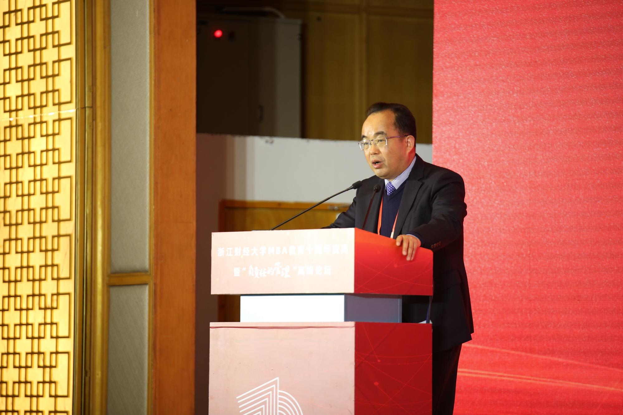 图为兄弟院校领导、浙江工商大学MBA学院院长钱水土致辞
