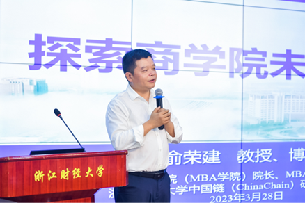 大学俞荣建教授做了“探索商学院未来形态”的主题演讲,提出卓越数字管理人才V型培养体系,指出商学院的建设应结合产业现状,培养符合企业战略发展和应用实际的商科人才。