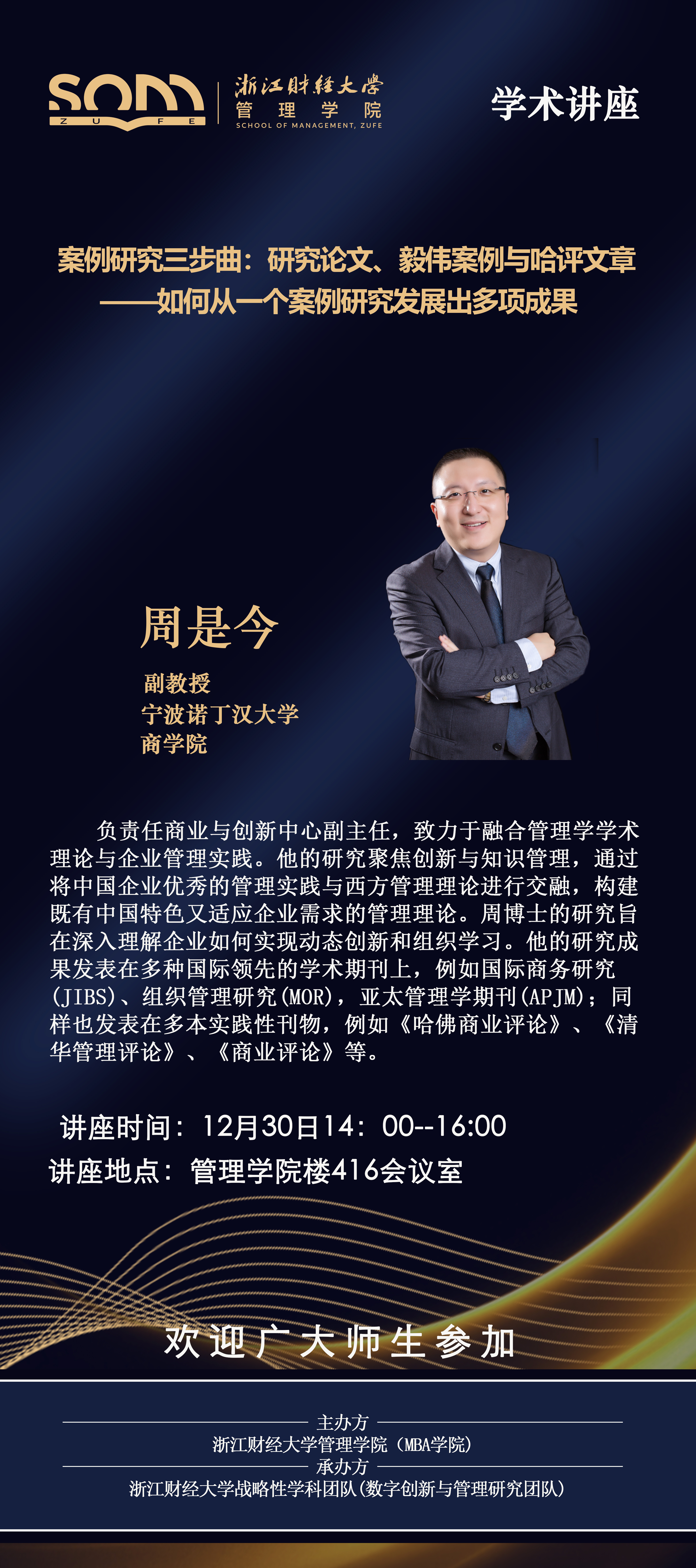 【讲座预告】周是今副教授:案例研究三步曲:研究论文、毅伟案例与哈评文章——如何从一个案例研究发展出多项成果