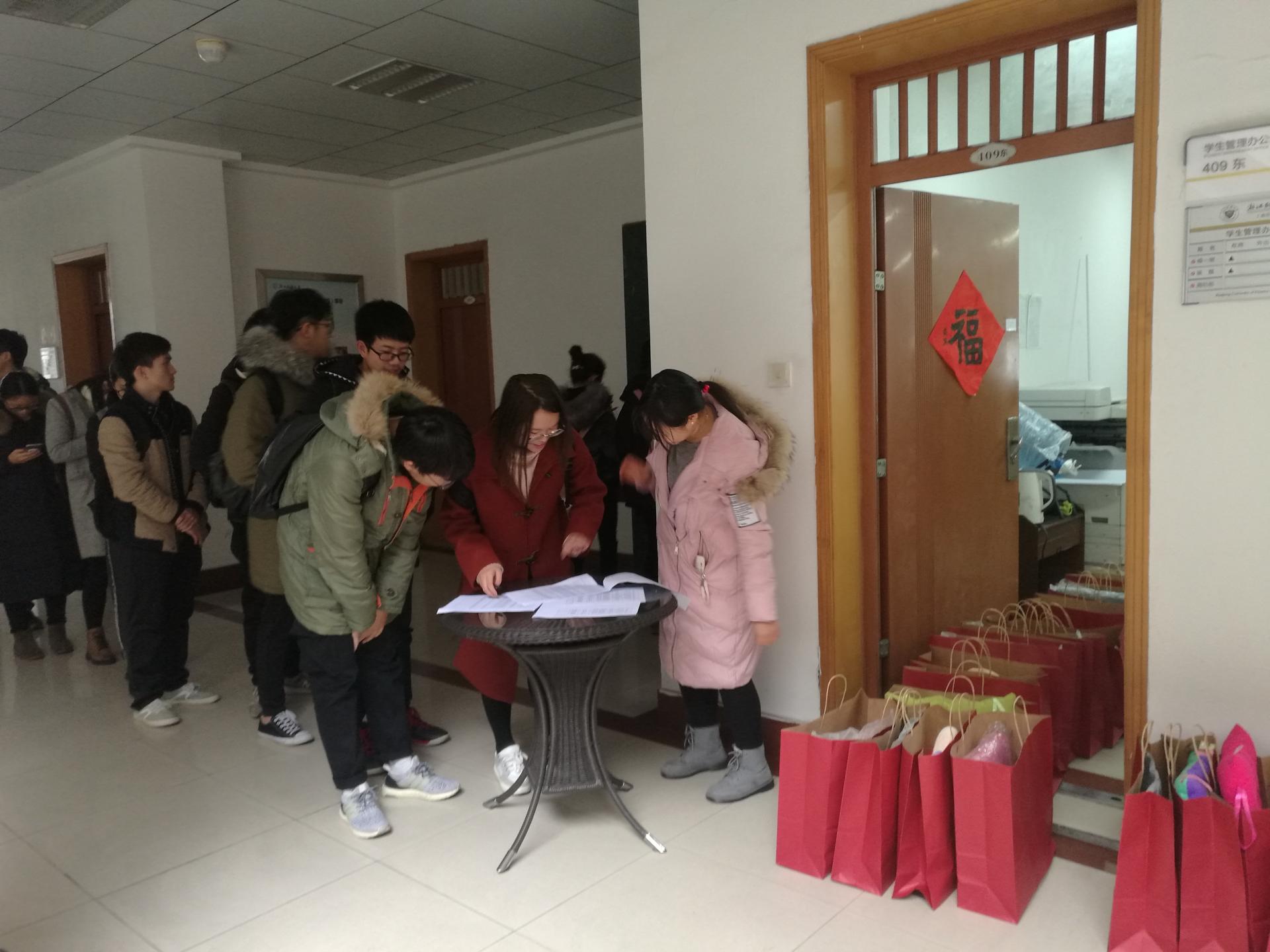 临近寒假,为力求每位家庭经济困难学生能够度过一个温暖祥和的寒假, 工商番茄小说 于1月16日下午在学院楼409为每位家庭经济困难学生准备了一份御寒慰问品,包括手套、热水袋、坐垫、礼品袋。为同学们送上寒冬里的来自工商番茄小说 的温暖关怀。同学们以班为单位有序地领取,脸上洋溢着开心的笑容,在感谢学院关怀的同时,同学们也怀揣着新的希望与憧憬开始新的学期规划与征程。