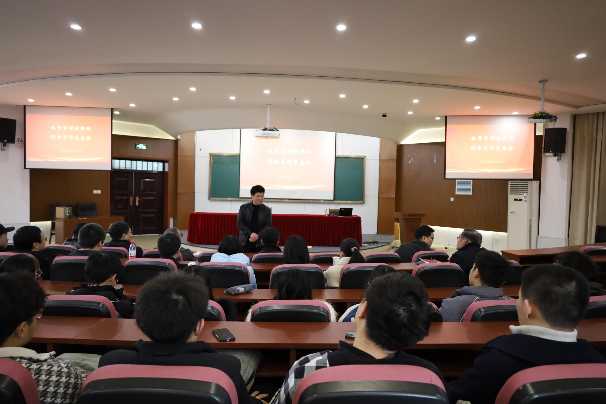2022年2月22日下午,工商学院楼217报告厅举行了数智管理创新班导师见面会。副校长董进才、工商学院院长王建明、党委书记黄卫华、信智学院副院长陈远高、工商学院与信智学院20多位导师、以及数智管理创新班项目执行人沈渊、班主任贺锦江、辅导员何俊杰、数智管理创新班全体同学参加了此次见面会。见面会由沈渊老师主持。