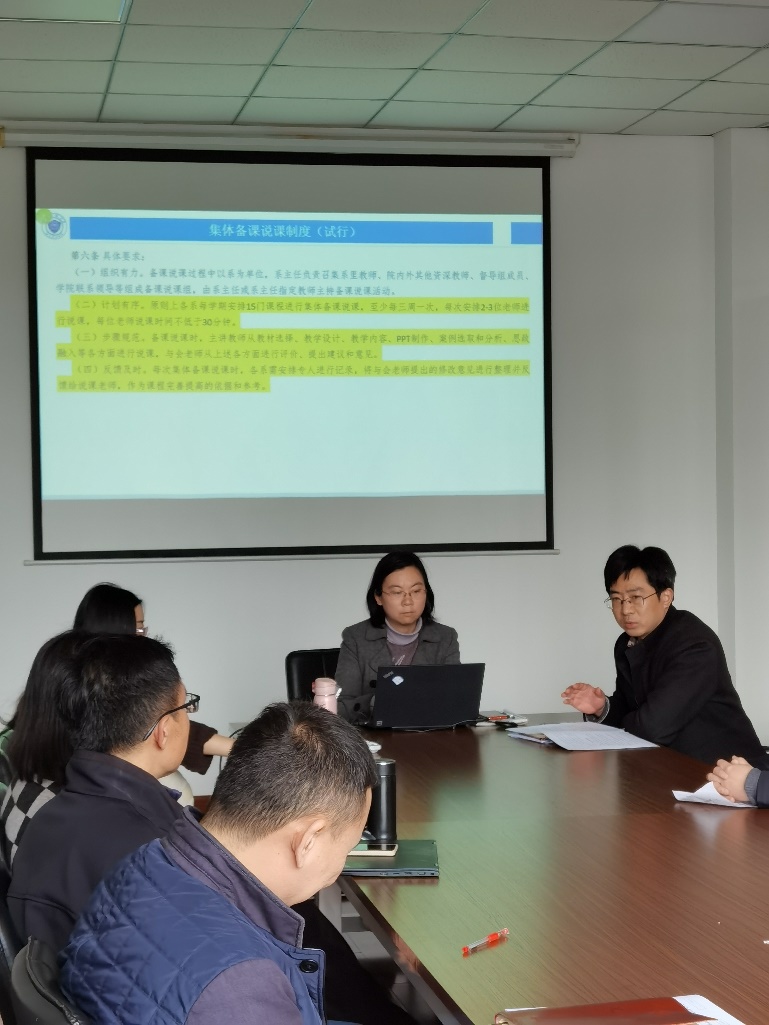 将重点做好集体备课说课制度的落实和成效。备课说课时,主讲教师从教材选择、教学设计、教学内容、PPT制作、案例选取和分析、思政融入等各方面进行说课,与会老师、课程组、督导组进行评价、提出建议和意见。同时,王院长再次强调本科毕业论文(设计)的过程指导重要性,做好质量工程,高度重视浙江省本科毕业论文(设计)抽检工作。
