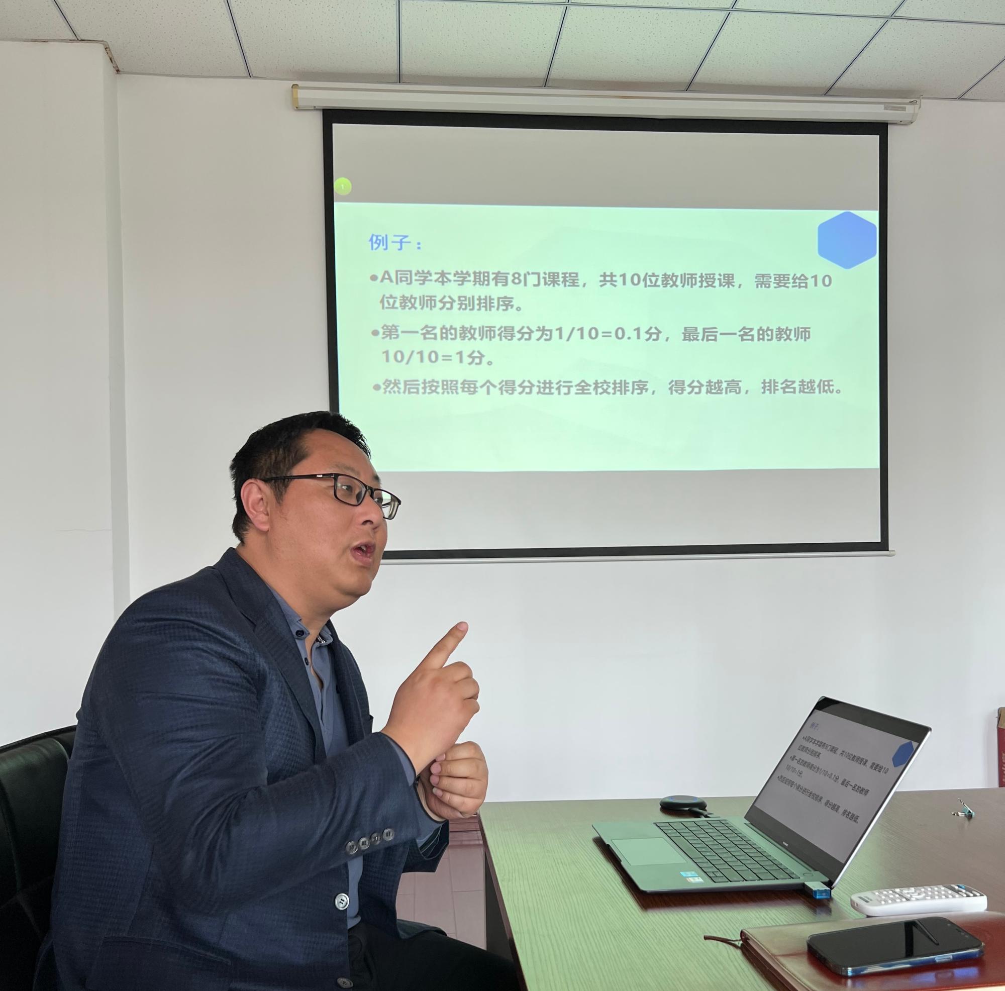 活动首先由教务处副处长叶舟老师为大家介绍了学校目前的教学改革特别是学评教改革的基本思路和相关政策,并结合自身教学经验与体会给大家提供了教学方面的建议,特别是关于混合式课程建设的建议。