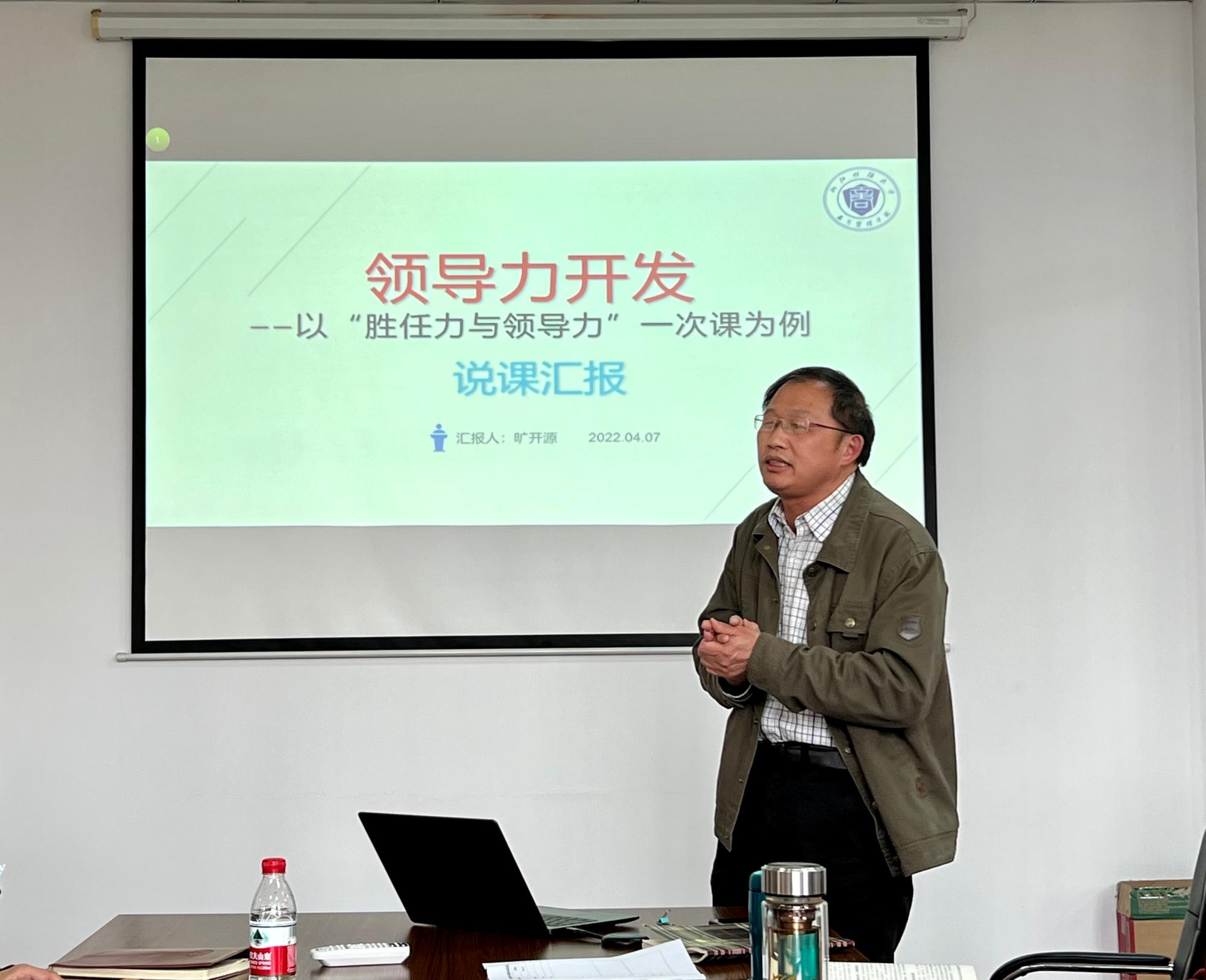 系主任旷开源以“胜任力与领导力”的一次课为例对《领导力开发》课程进行了说课,从课程的性质和教学的基本思路出发,给大家分享了如何设计教学过程以让学生理解“领导胜任力”以及如何通过课堂小组讨论等方式达到培养开发领导力的教学目的。曾垂凯也发表了自己对于这门课程的理解以及如何让学生尽可能多的参与课堂教学的建议;与会的其他老师也从课程设计、教学内容、课程特色等方面,对一些细节问题进行了探讨。