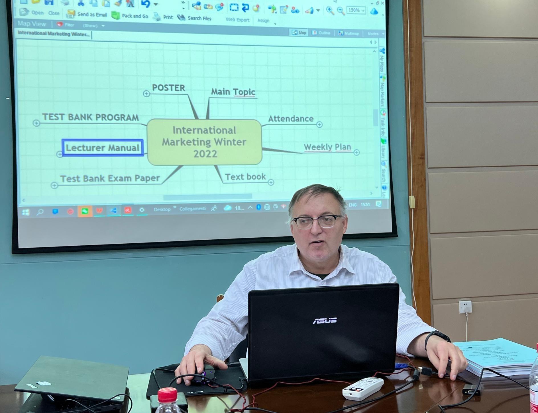 外教Da Hai以思维导图的方式对《市场营销学(双语)》和《国际营销(双语)》的教学大纲、课程设计、课程结构、教学内容、考核方式展开了具体阐释,内容丰富详实。Da Hai不仅着力于增长学生的营销思维与能力,还重点发展学生的英语读、写、听、说能力。为此,Da Hai安排了内容丰富的视频录制演讲、项目策划、主题辩论、Poster设计张贴,同时设置辅导时间解疑学生的学习困难。