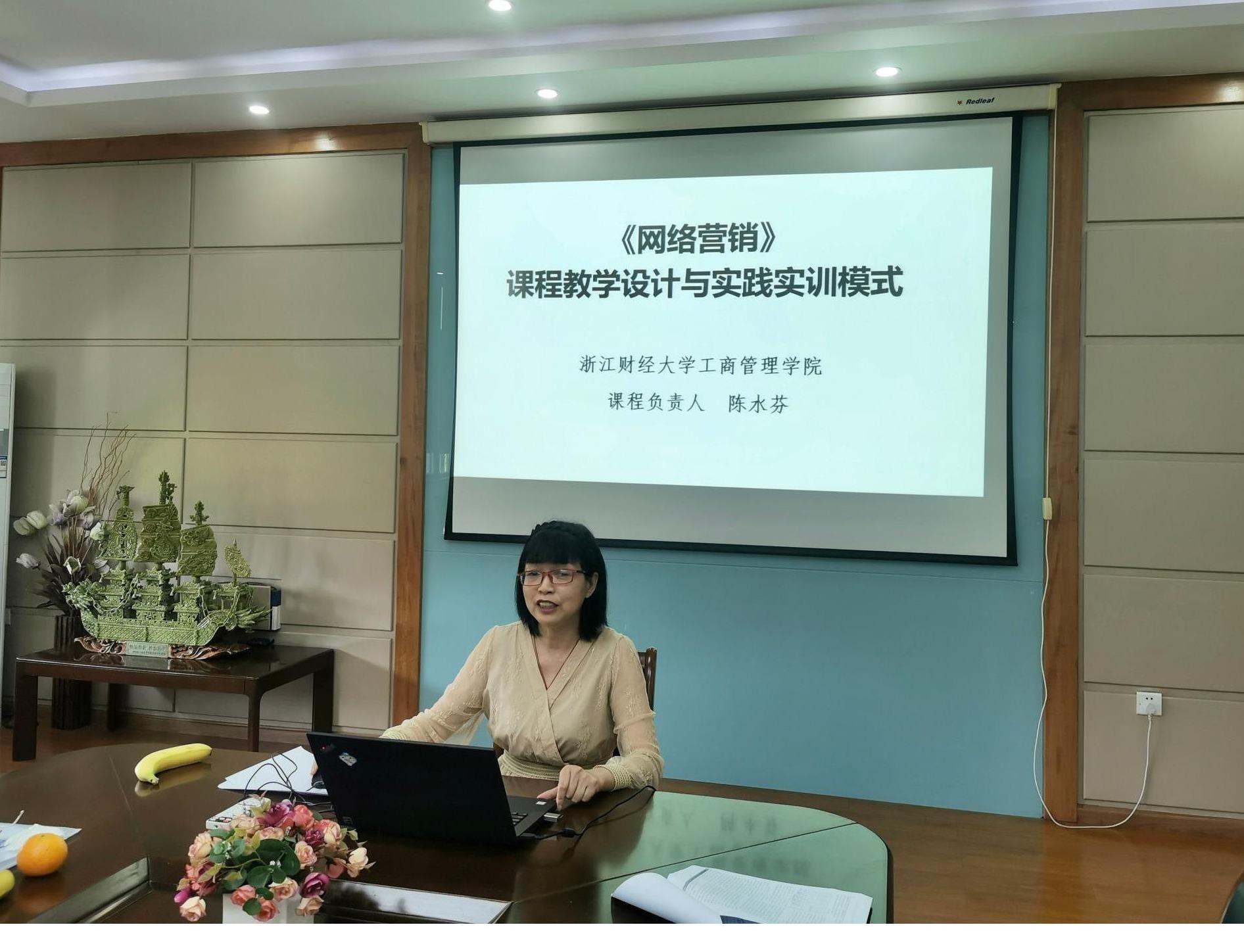 陈水芬老师就《网络营销》课程的设计和教学方案进行了深入的介绍。陈老师认为《网络营销》课程更多的应该向中小微企业倾斜,尽可能地帮助学生认识到《网络营销》的重要性和实用性。通过“学习通”的可视化作业递交和相互点评机制,陈老师将教师授课、学生听课和自主实践紧密的结合,充分体现了实践和就业导向。通过课程的讲解显示出老师一丝不苟、兢兢业业的教学态度。