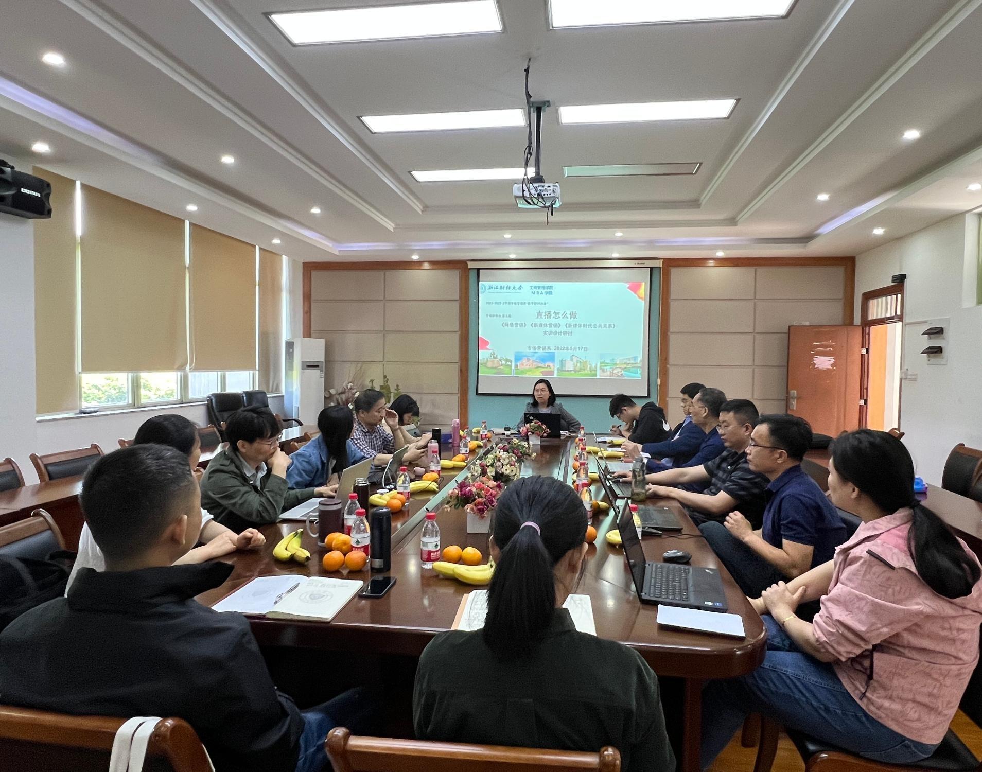 5月17日下午学院410会议室,市场营销系以“直播营销该怎么做”为主题整合《网络营销》、《新媒体营销》、《新媒体时代的公共关系》三门课程进行了集体备课活动。本次邀请了靳明教授做主题演讲,结合几位老师的说课,旨在通过教学、实践和研究相结合的方式,提高教学质量,让学生接触更多的非书本知识。本次活动由系主任陈颖主持,20位市场营销系老师和教学办赵红老师参加。