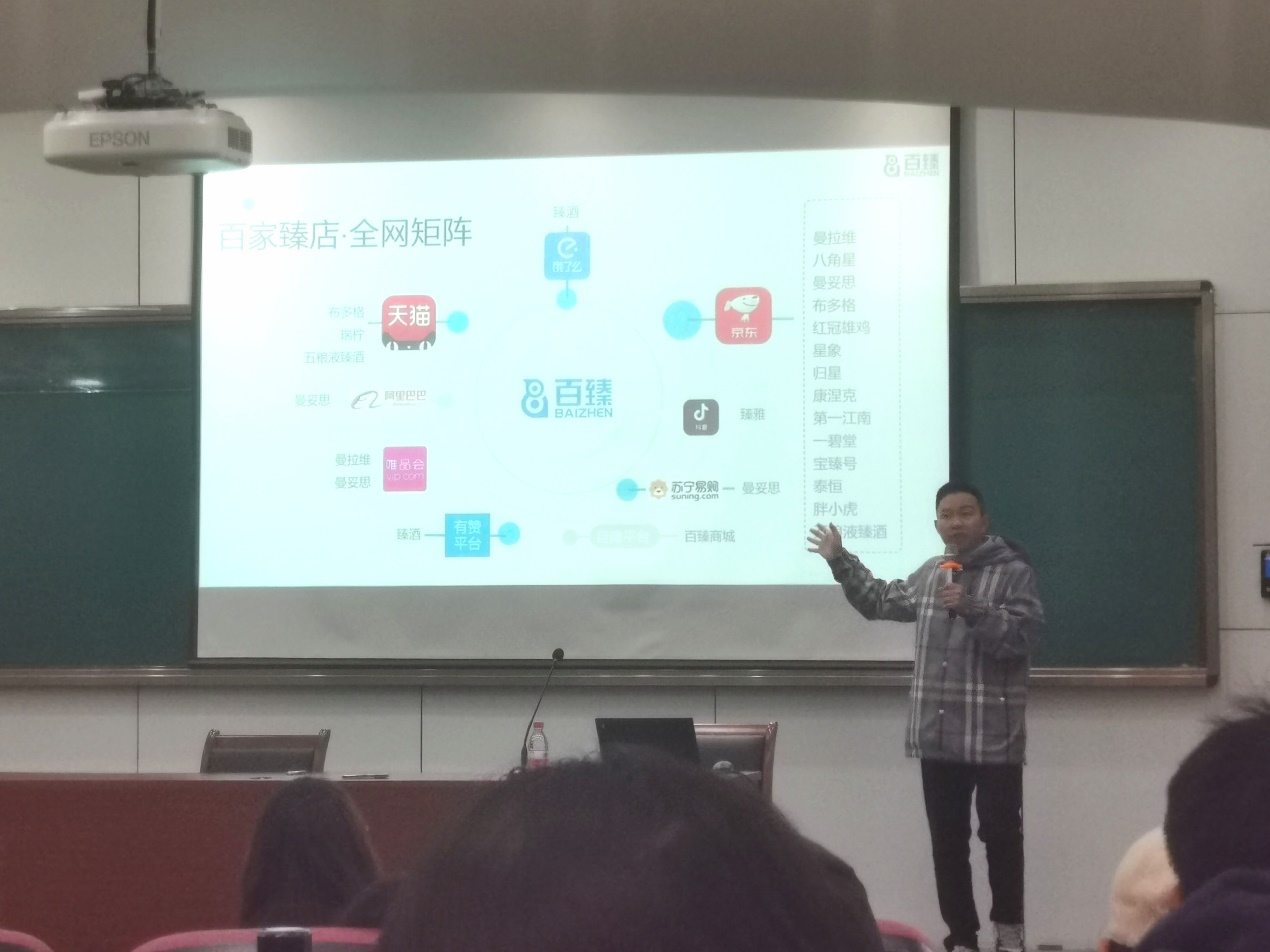 黄良将总经理首先介绍了浙江百臻控股集团的基本概况,然后以百臻集团具体的实例讲解了创业者需要具备的五种力量:前瞻力、共识力、平台力、创造力与保障力。以百臻集团在不同区域设置仓库的实例强调预案机制的重要性,随后介绍了关于创业的八条价值观,清晰地讲解了资源整合与可持续发展,点明创业中最重要的是商业模式创新、最大的保障力是人力资源,不同于可以后天培养的五种力量,核心元动力——善良是最重要的。最后臻月项目负责人付青云分享创业经验,以自身的创业项目介绍了波特价值链模型、SWOT模型以及规划时间轴,并以自身创业感悟强调五种力量的重要性。