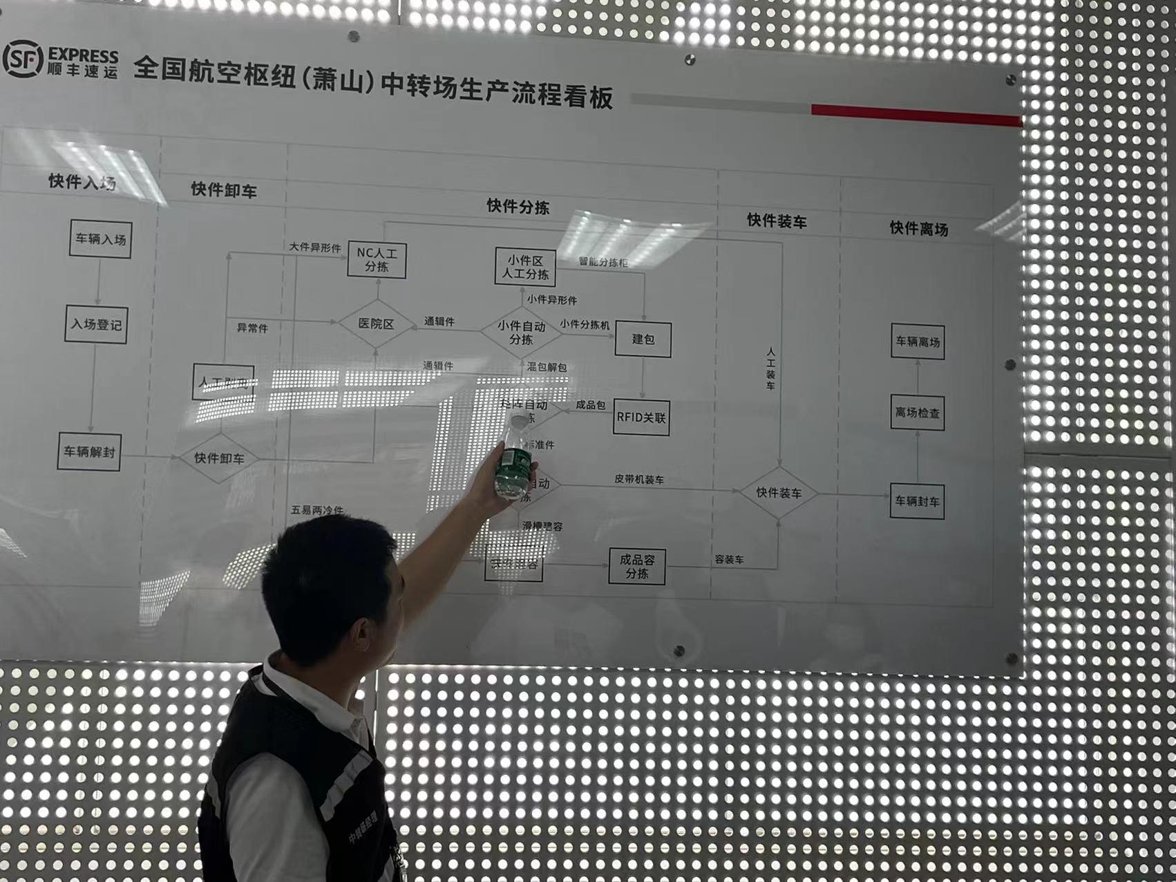 为拓宽学生专业视野,促进专业教学与生产实际对接,2023年6月13日,《物流系统规划与设计》课程任课老师王媛媛带领全班同学赴顺丰杭州航空枢纽开展认知实践活动。杭州航空枢纽运营经理朱林枫参加了此次教学实践活动,并为师生们讲解了中转场生产组织架构、工艺布局、生产流程和质量管理等。