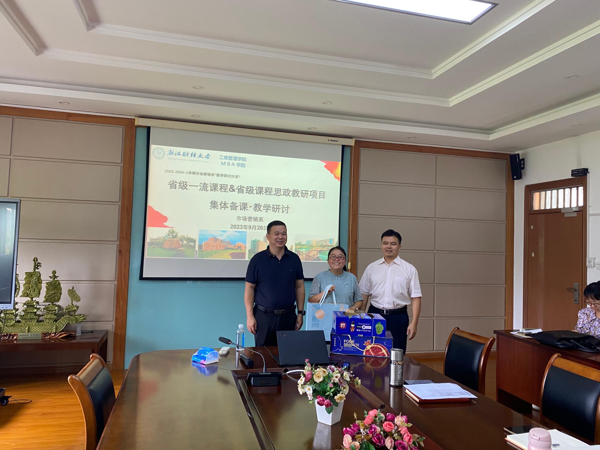 410会议室,市场营销系就省级一流课程和课程思政项目申报与建设经验开展了研讨活动,12位教师参加了教学研讨。