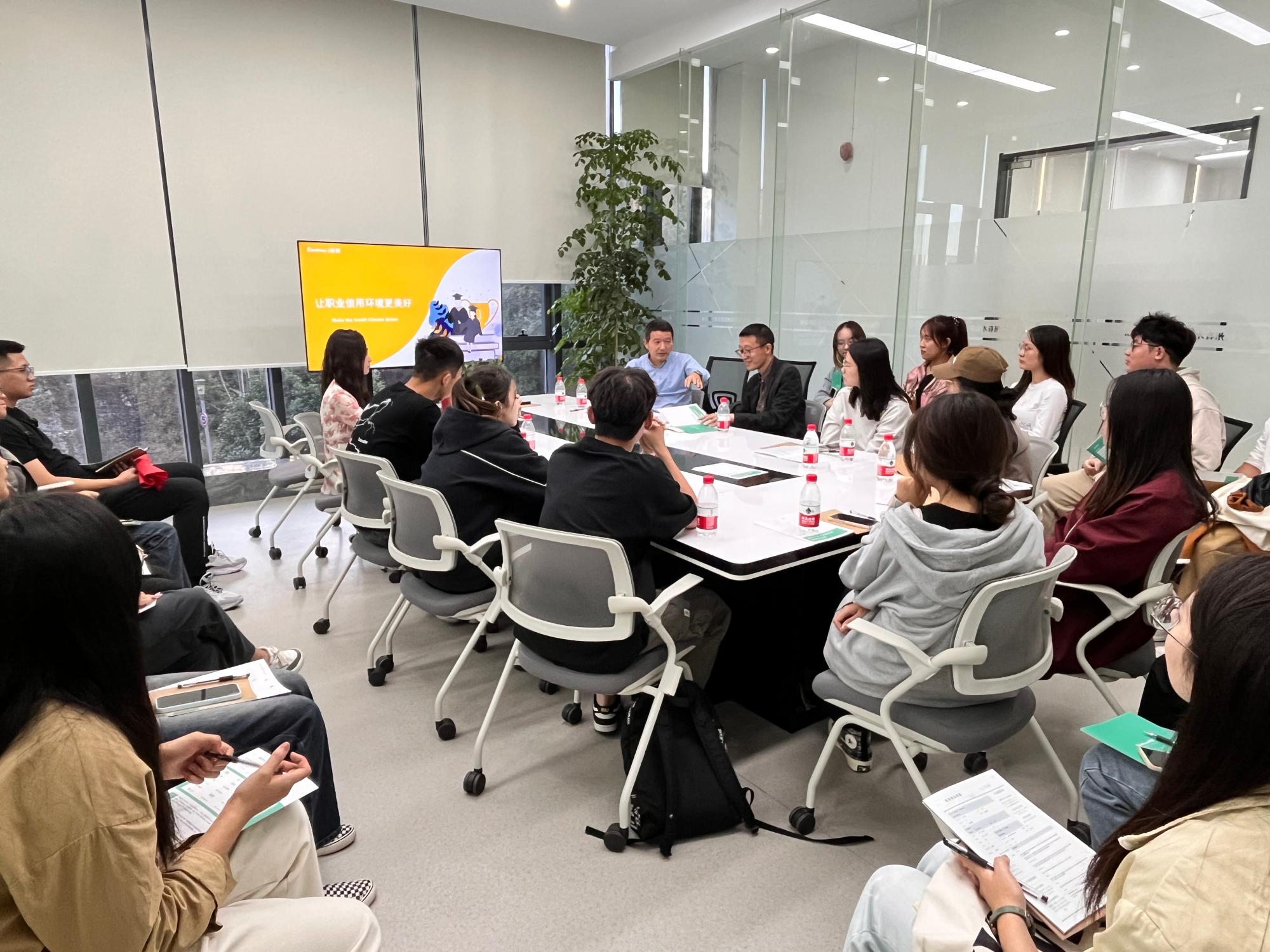 刘丹副总裁带领产业学院师生参观了公司工作场所、产品展示区。然后在公司会议室,产业学院师生与i背调公司进行了座谈交流。i背调公司市场部负责人全方位地介绍了公司发展历程、产品研发创新、合作平台及未来规划。产业学院师生就感兴趣的问题与i背调公司进行了深入交流,现场氛围和谐融洽,老师和同学们保持着高度的求知热情,认真倾听、积极提问,负责人也对相关问题进行了详细的解答。同学们表示,参加此次活动,开阔了眼界、增长了见识,对人力资源领域的智能化背调行业有了更深入的了解。