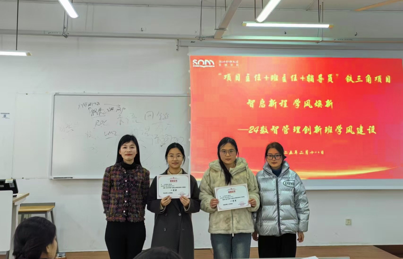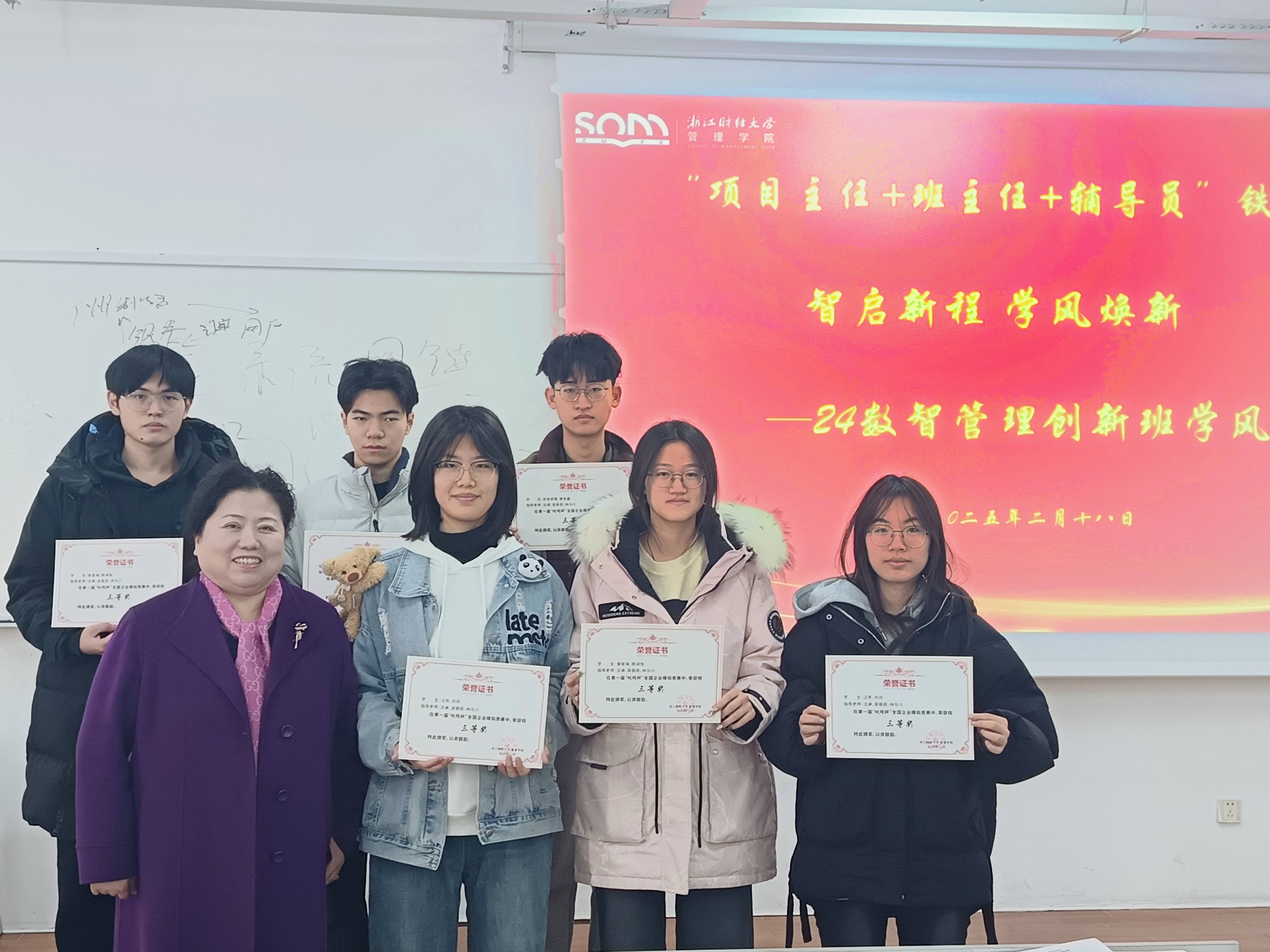 随后,陈小芳书记、沈渊老师、吴丽民老师和周依凡老师为在学院“叱咤杯”企业模拟大赛中表现出色的同学颁发荣誉奖状,鼓励他们再接再厉,也激发了其他同学的学习热情与竞争意识。