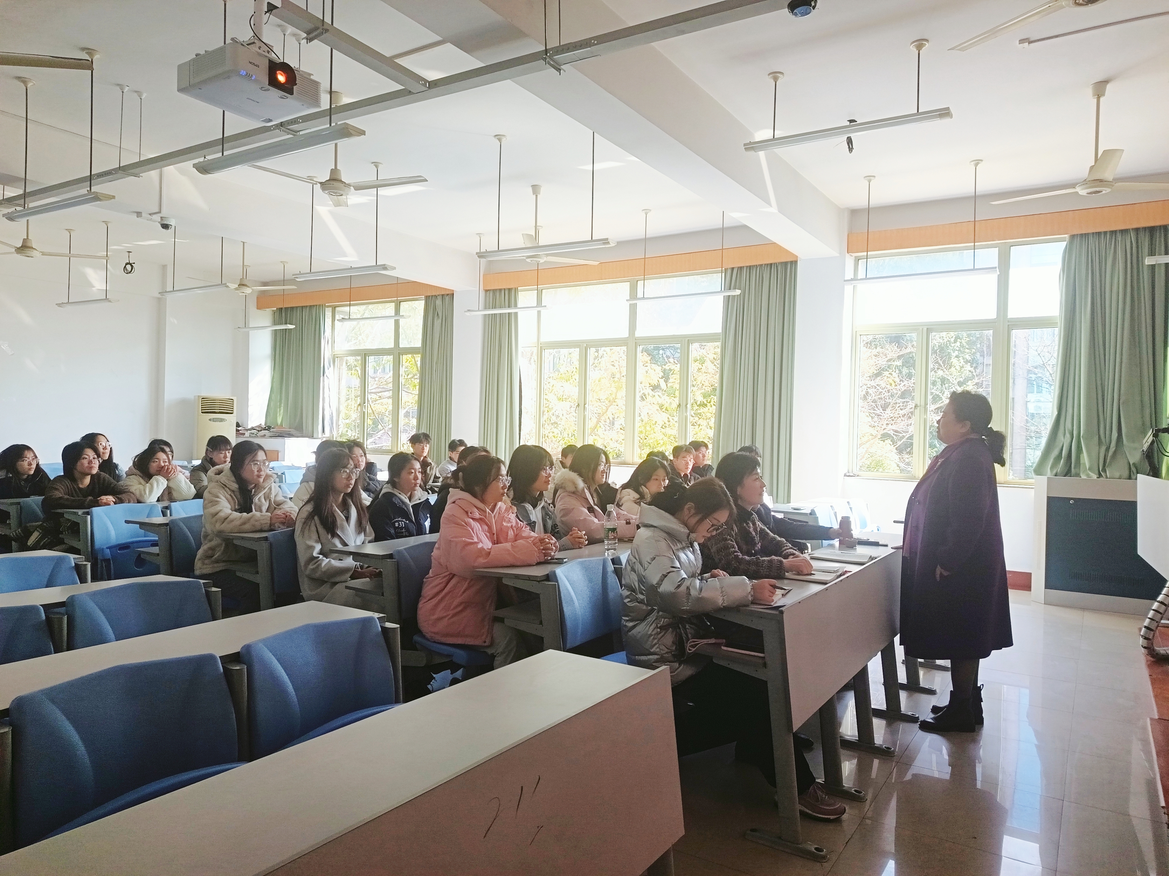 接着,班主任吴丽民老师在会上对新学期注意事项进行了悉心叮嘱。她强调,在学校大力开展“三风建设”的背景下,抓好学风、养成良好习惯、学好专业技能至关重要。她特别提醒同学们要转变大学学习思维模式,主动探索、因兴趣求知,注重多学科交叉融合。她期待同学们在新学期保持好奇心,以青春的活力与新鲜感,拓宽知识边界,迈向更广阔的人生境界。