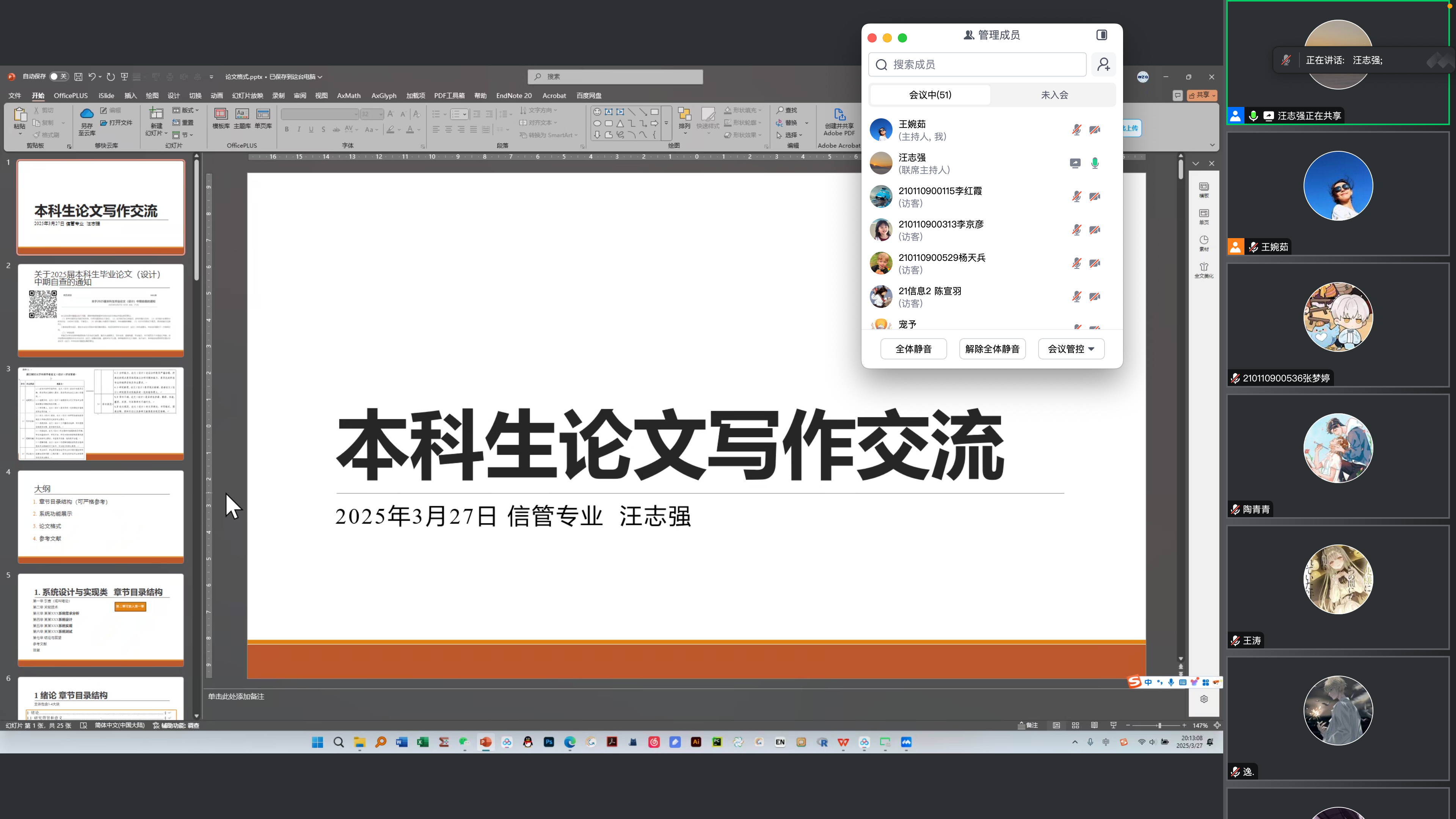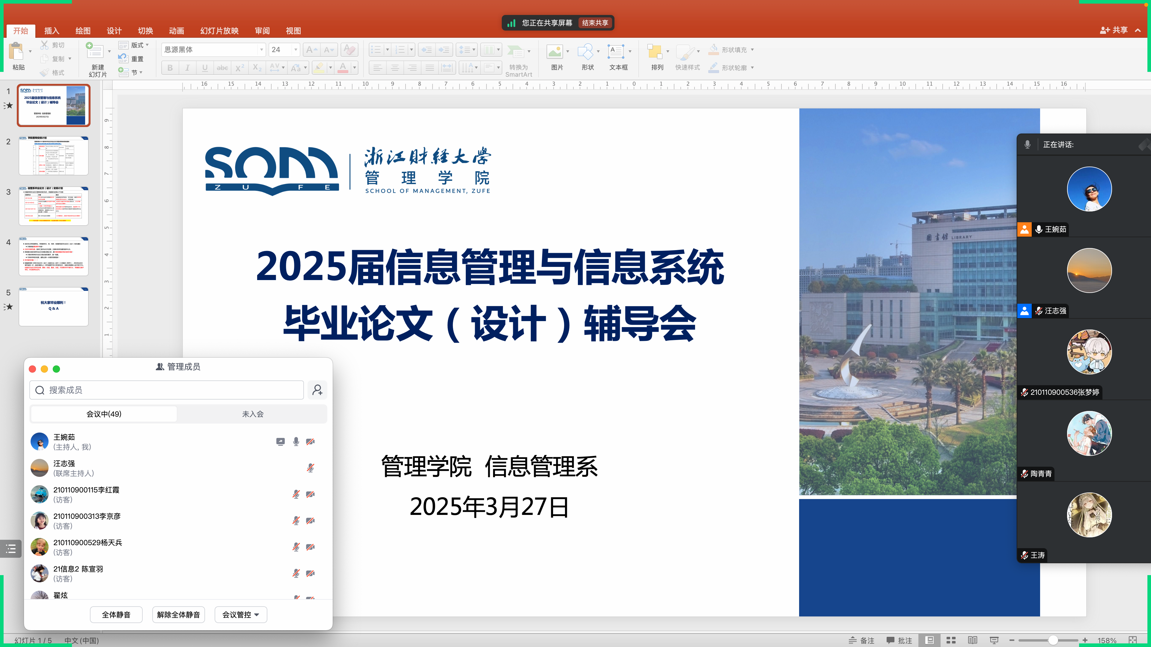 信息管理系在线上腾讯会议举行2025届信管毕业论文(设计)辅导会。本次讲座由信管系主任王婉茹老师主持,汪志强老师做毕业论文写作辅导交流,全体2025届信管毕业生线上参加了本次辅导会。