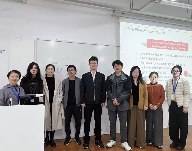 开展省级一流课程《战略管理(双语)》教学观摩活动。此次活动是2021年度省级一流课程建设中期检查的重要环节,由课程负责人俞萍萍副教授主讲,学院督导组、各系部教师等8人参与现场观摩。
