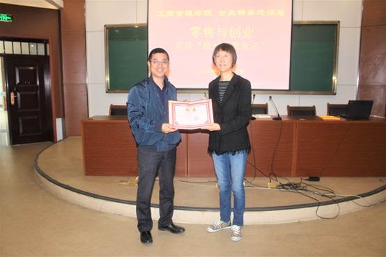 在讲座开始前,由学院的倪文斌副院长给厉玲老师颁发工商番茄小说