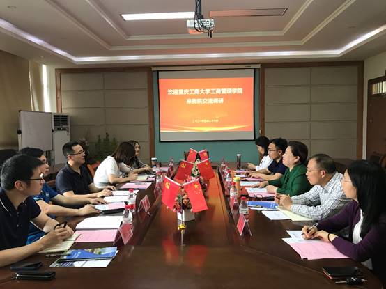 进行调研。学院沈渊教授、工商系主任吴丽民、人力系主任旷开源、中美合作项目负责人王建国、人力系教师张维维等人参加了交流。