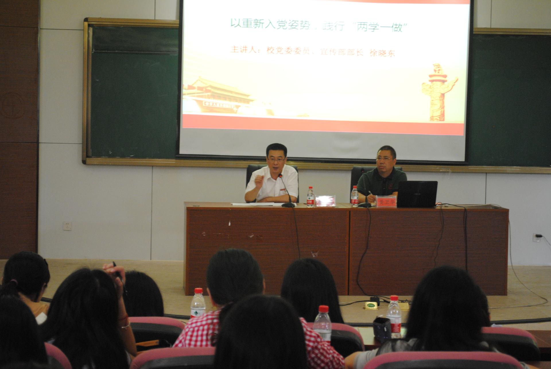 130多名师生党员讲了一堂题为“以重新入党姿势,践行‘两学一做’”专题党课,党课由学院党委书记黄卫华老师主持。