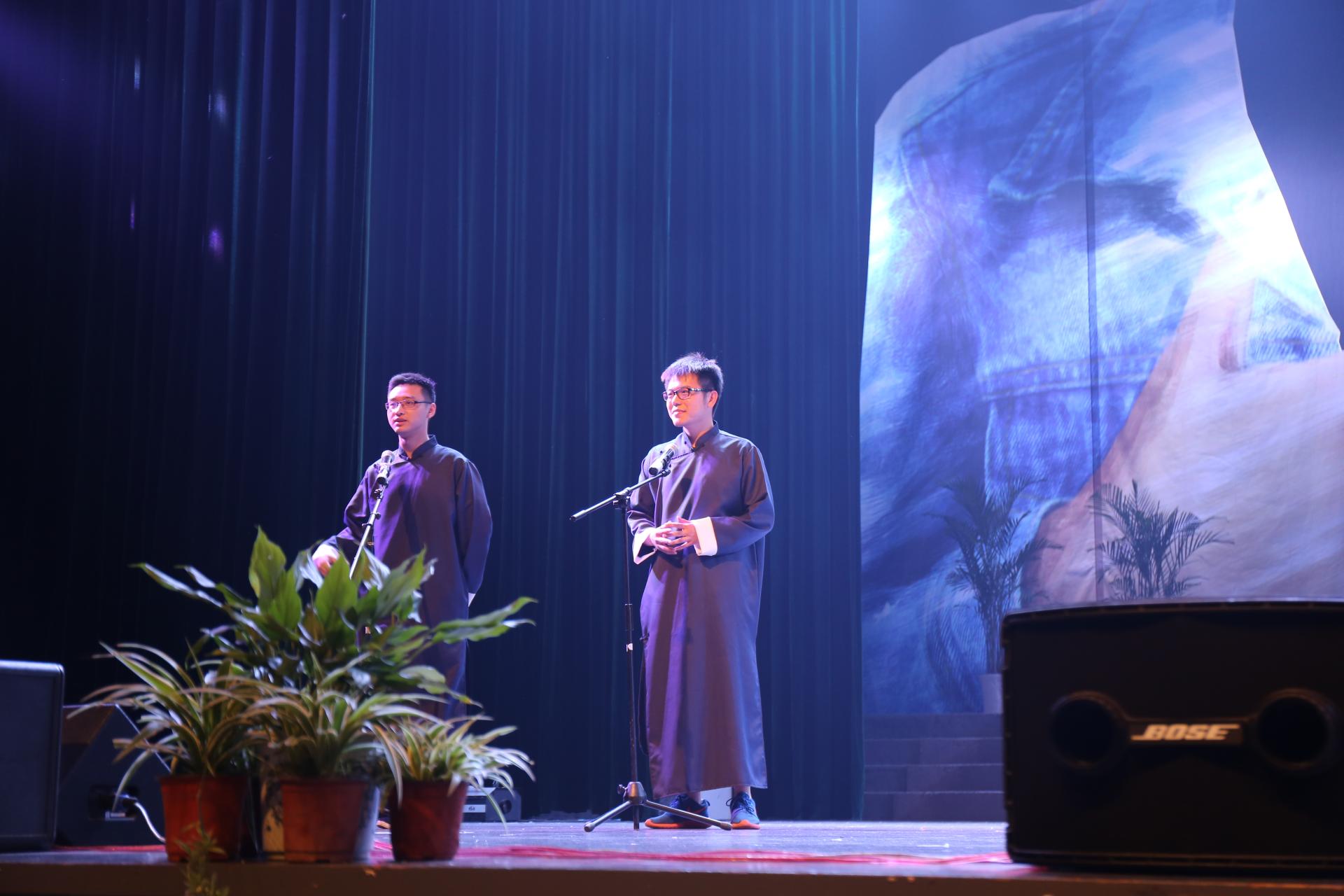 在祝福中,晚会正式拉开帷幕。三大篇章带领所有观众回忆四年时光。在第一篇章“不贰人生”中,有12工商1合唱励志歌曲《蜗牛》,也有12市营班热情洋溢的走秀。在感慨之余,学院更是对12级优秀毕业生进行了表彰,愈加证明了学子们的才艺双全。在第二篇章“零光片羽”中,有学弟送上的歌曲祝福,也有企业管理系系主任沈渊老师送上的法文朗诵。四年情谊,从不停止。第三篇章“未知之陆”则是融汇了校街舞队的表演与歌曲演唱,正如12人力班的节目名字一样:最好的我们,最好的青春,正在启航。