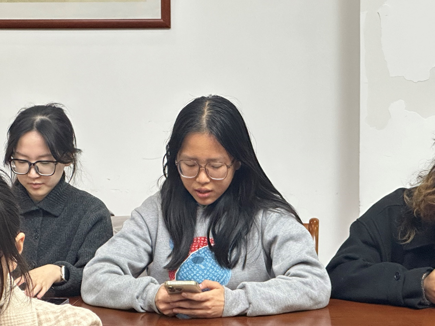 随后,各部门负责人进行了近期的工作汇报并提出了工作中发现的问题以及对于未来工作的规划。团委书记顾晗可老师对各部门的近期表现提出表扬,也提出了各部门应加强宣传工作,加强各部门联动作用的建议。