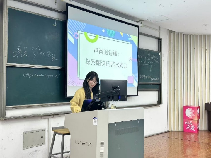 115教室举行了一场朗诵专题的公共艺术讲座。此次讲座,我们很荣幸地邀请到了校艺术团麦浪主持朗诵组的吴芷欣学姐,通过一场生动且富有启发性的讲解,带领同学们深入领悟朗诵艺术的独特魅力,更在声音的世界中感受到语言的力量和情感的共鸣。