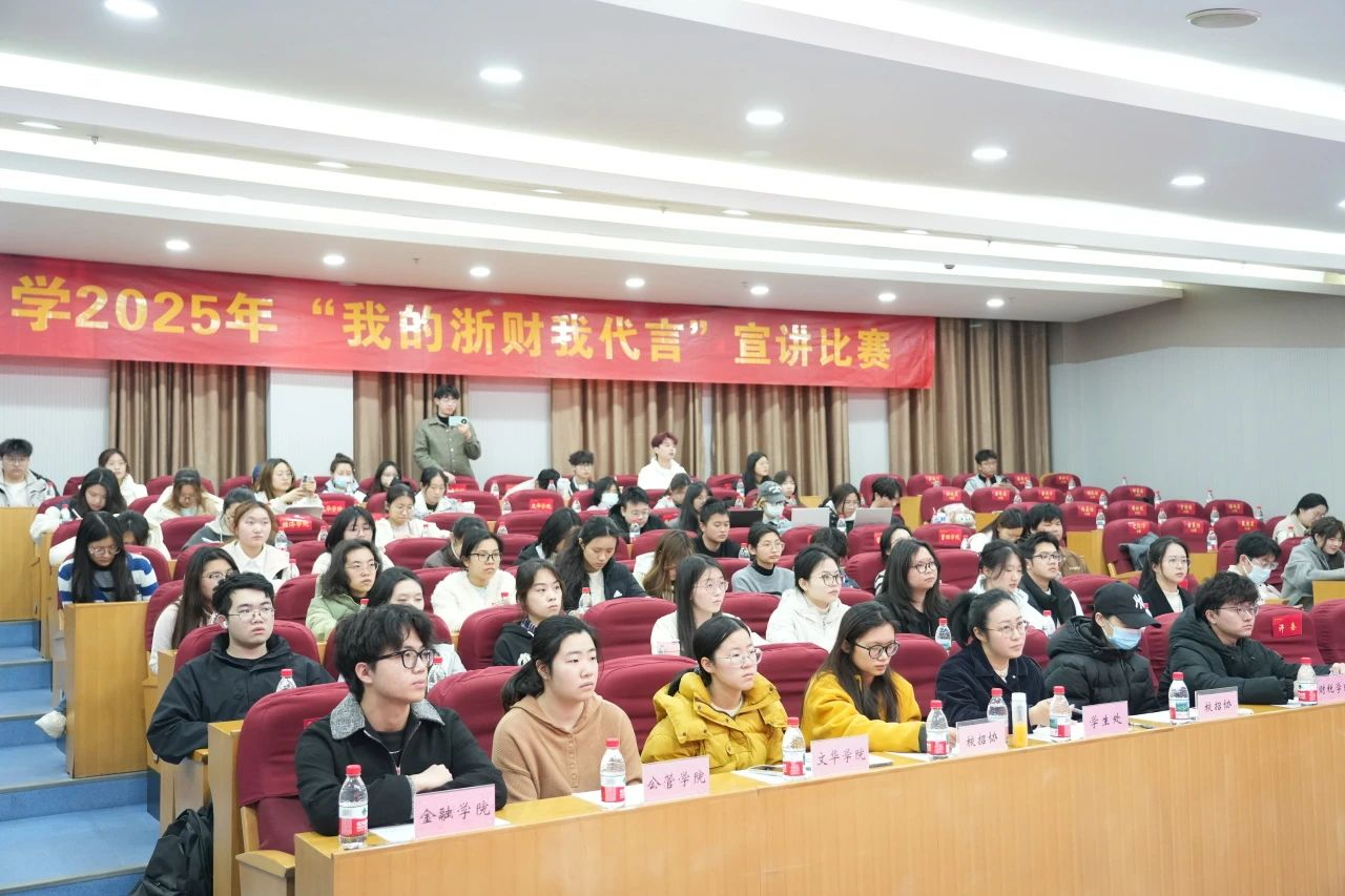 近日,我校首届“我的浙财我代言”宣讲比赛决赛在学术中心第三报告厅成功举行。本次大赛面向全体在校生,通过搭建学生自我展示平台,鼓励在校生以创新视角讲述浙财故事,结合专业特色、校园文化、成长故事等核心元素,展现浙财学子的精神风貌,以多元创意与真挚表达为学校招生宣传注入青春动能。经过层层选拔,共有27名候选人进入校级决赛。
