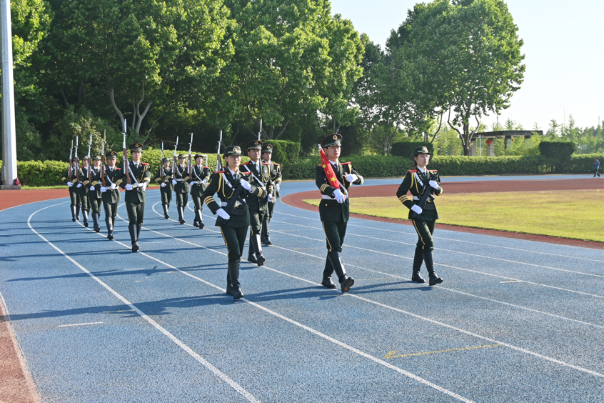 全体管院学子整齐列队面向国旗。浙财大国旗护卫队步伐铿锵、动作整齐,护送国旗入场。《义勇军进行曲》激昂奏响,国旗如骄阳缓缓升起,象征民族复兴。管院学子神情肃穆、站姿挺拔,高唱国歌,尽显爱国敬意。