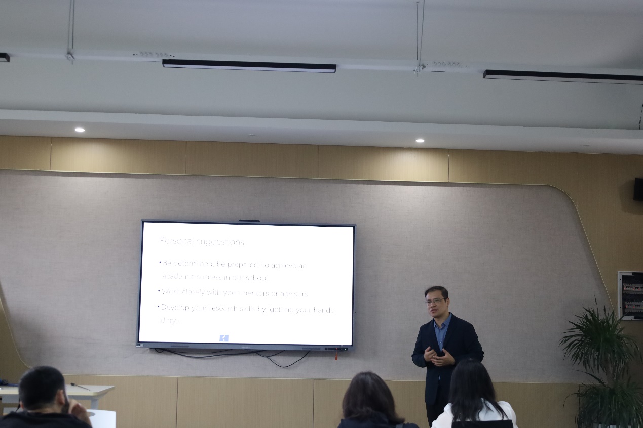 最后,教师代表赵雨涵博士分享了她在研究生阶段的学习经验,重点介绍了时间管理、论文阅读和写作的方法以及论文如何选题等内容。