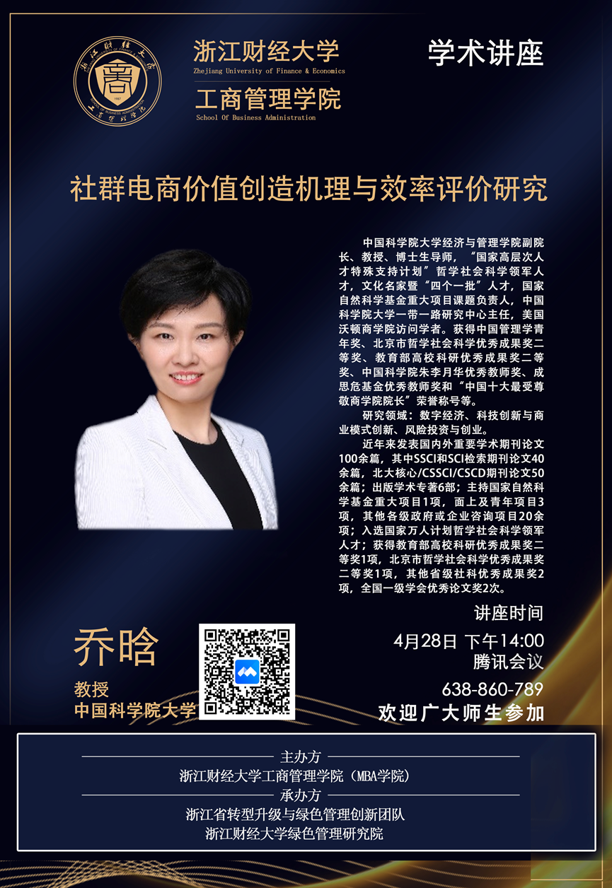 【讲座预告】乔晗教授:社群电商价值创造机理与效率评价研究