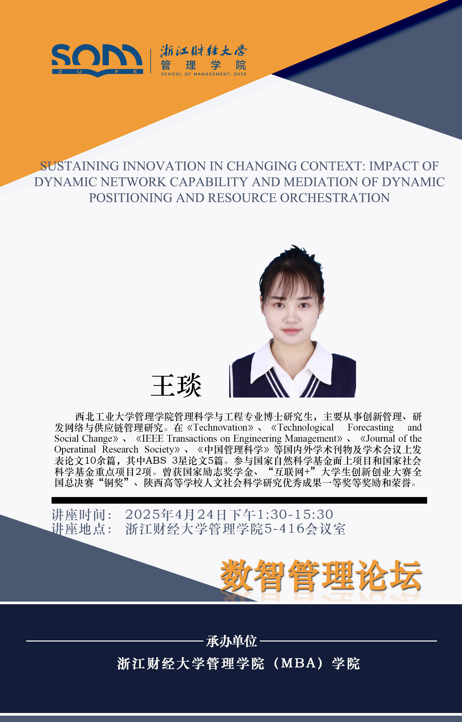番茄小说 新财经战略系列学术活动2025年第19期【学术报告】王琰:Sustaining Innovation in Changing Context Impact of Dynamic Network Capability and Mediation of Dynamic Positioning and Resource Orchestration