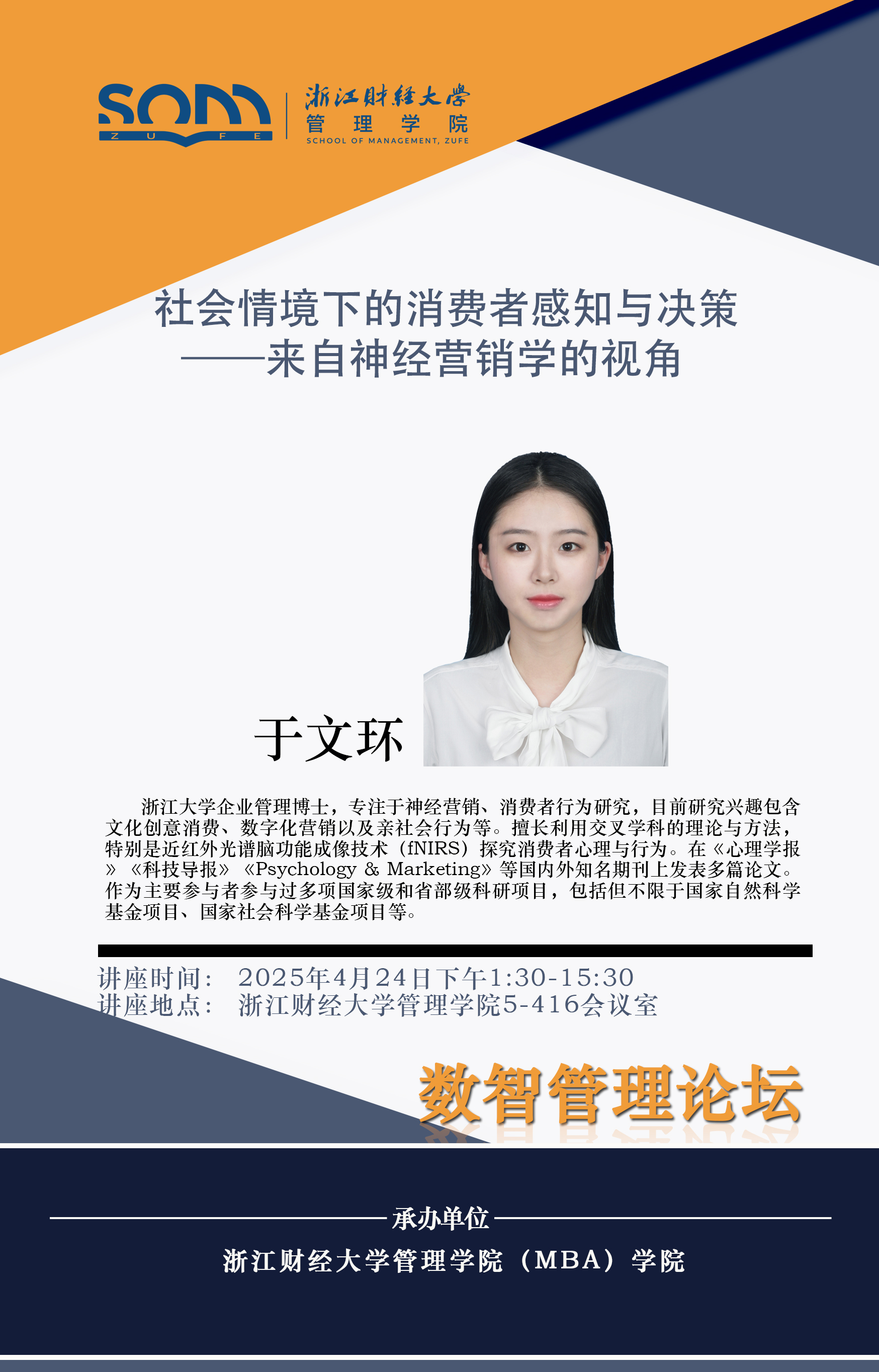 番茄小说 新财经战略系列学术活动2025年第22期【学术报告】于文环:社会情境下的消费者感知与决策——来自神经营销学的视角