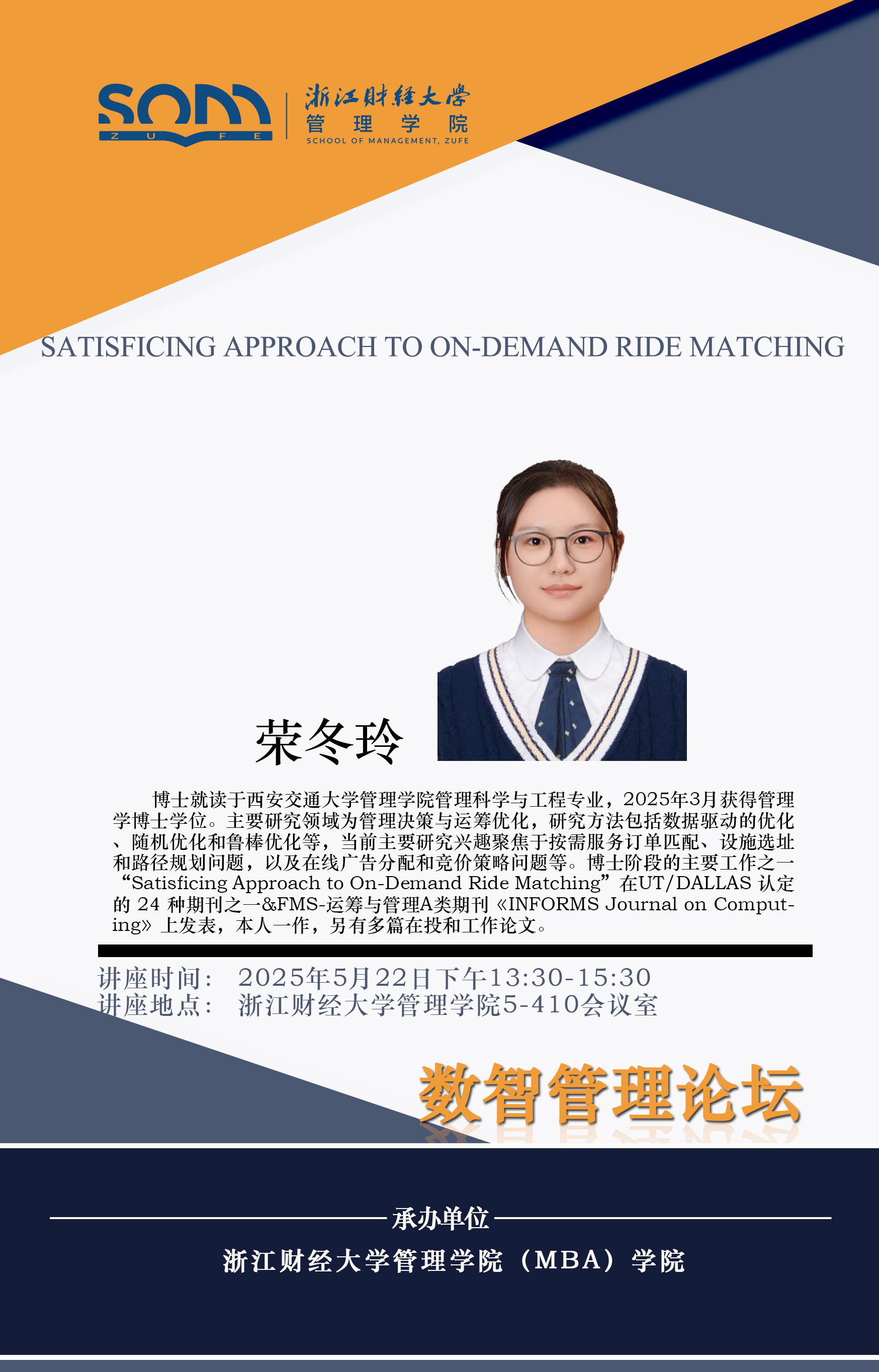 番茄小说 新财经战略系列学术活动2025年第37期【学术报告】荣冬玲:Satisficing Approach to On-Demand Ride Matching