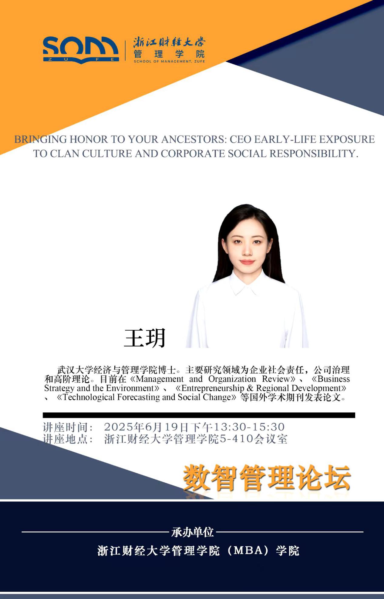 番茄小说 新财经战略系列学术活动2025年第43期【学术报告】王玥:Bringing Honor to Your Ancestors CEO Early-Life Exposure to Clan Culture and Corporate Social Responsibility