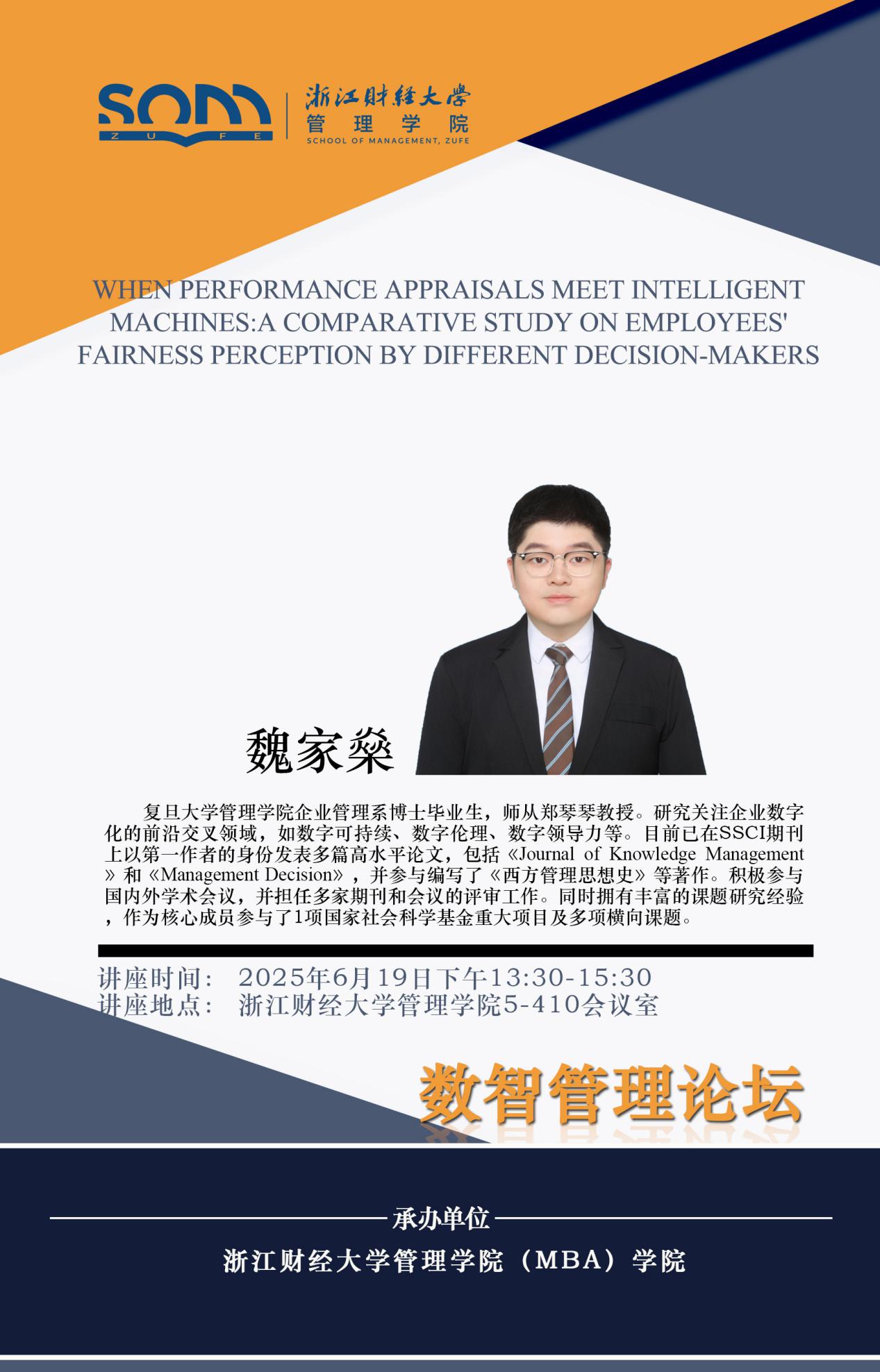 番茄小说 新财经战略系列学术活动2025年第44期【学术报告】魏家燊:When Performance Appraisals Meet Intelligent Machines A Comparative Study on Employees' Fairness Perception by Different Decision-makers