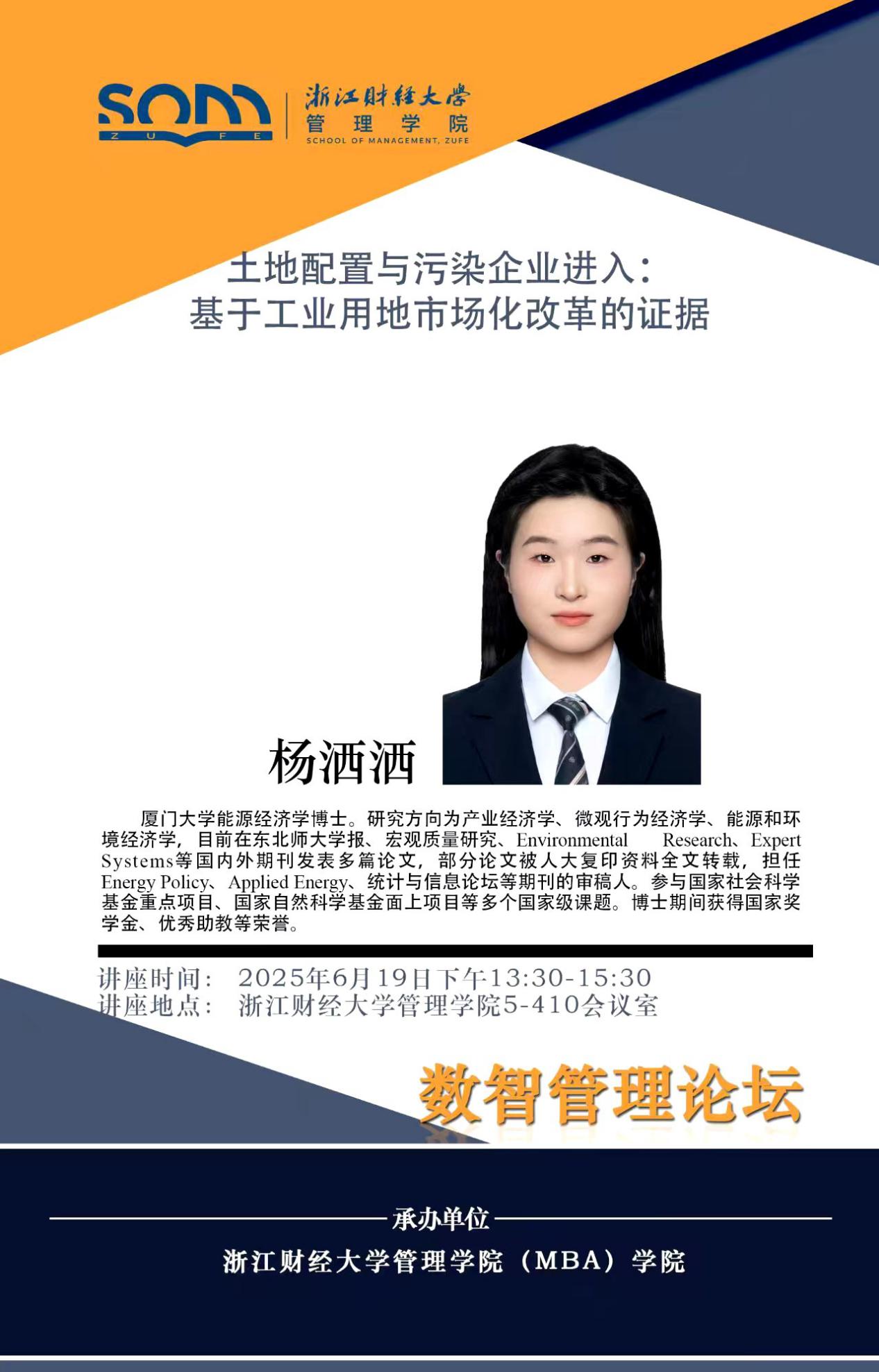 番茄小说 新财经战略系列学术活动2025年第46期【学术报告】杨洒洒:土地配置与污染企业进入:基于工业用地市场化改革的证据