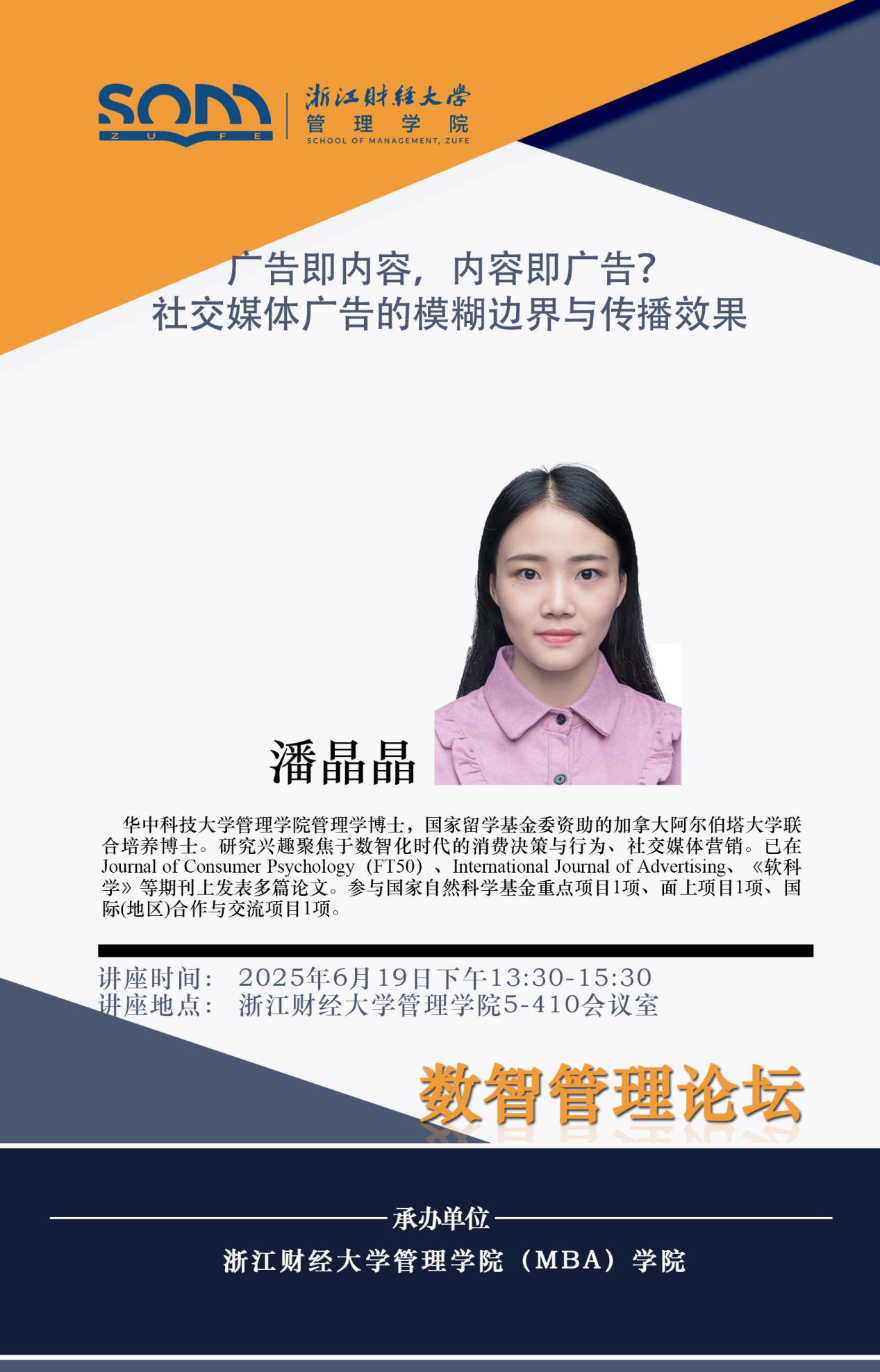 番茄小说 新财经战略系列学术活动2025年第47期【学术报告】潘晶晶:广告即内容,内容即广告?社交媒体广告的模糊边界与传播效果