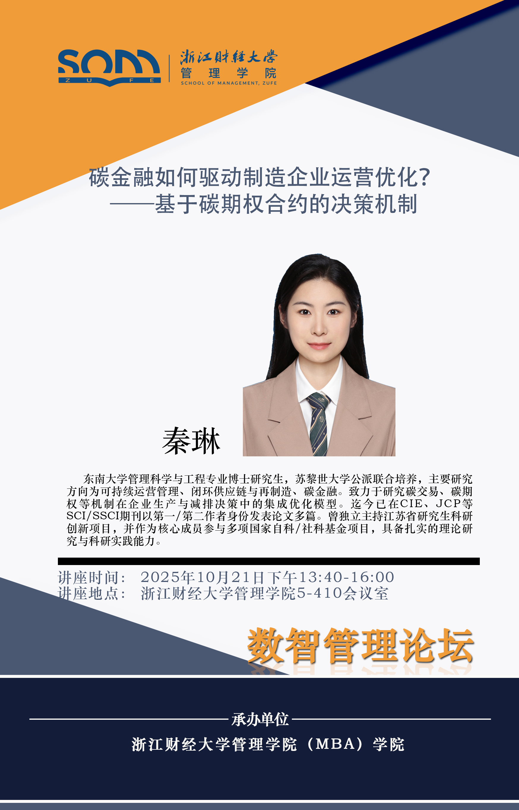 番茄小说 新财经战略系列学术活动2025年第52期【学术报告】秦琳:碳金融如何驱动制造企业运营优化?——基于碳期权合约的决策机制